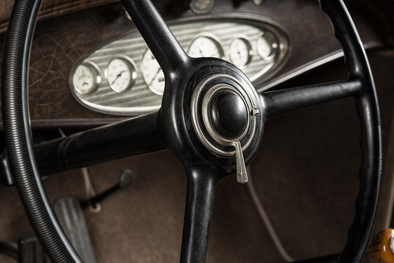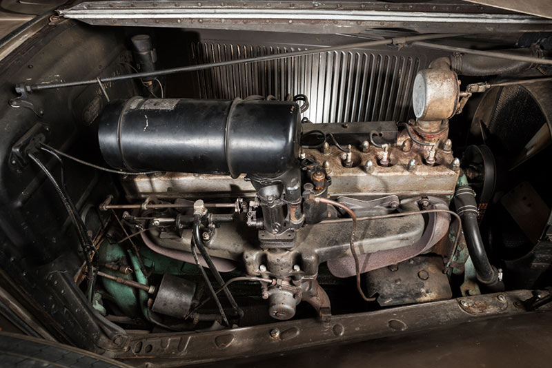 Under the side-lift bonnet is a 125 horsepower “high compression” (5.2:1)straight-eight with 384.8 cubic inches to pull the old chariot along. “It’s got a hydraulic clutch which makes driving it easy,” Rod says. “You just push a button on the dash and you can change gears without using the clutch pedal. That was early auto transmission engineering. It’s all original, never been worked on. Apart from fixing the radiator which needed three people to lift it out, I haven’t had to touch anything except the very basics.”