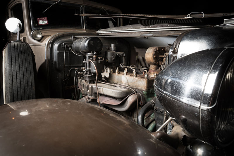 Rod found the Imperial for sale in the US for just $35,000, which he couldn’t let slip, especially when he saw how many miles it hadn’t done. “The previous owner Monty had literally driven it 200 miles in 20 years!” he recalls. Naturally, Rod continued to dig deeper, tracing the Imperial’s ownership history. “When Legs was shot, the car was confiscated by the police, including his girlfriend’s suitcases in the boot and put into storage until after WWII. A chap by the name of Paul Stern collected it and stuck it in what became a very famous museum. He was a serious Chrysler collector. When he died in 1972 the collection was sold off and the Imperial got sold on to one of the owners prior to Monty.” Only 36,500 miles have been put on the Chrysler sedan, “the cylinder head has never been off it, and everything you see on it is as it was when Legs drove it,” he says.
