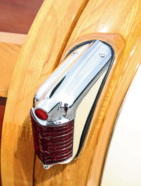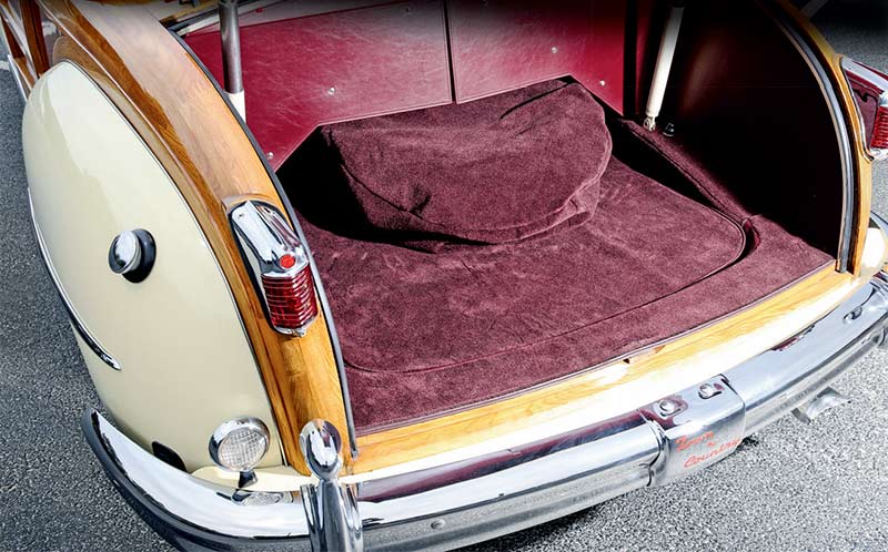The wooden frame started at the firewall and was formed from heavy white ash with inlay panels of mahogany bonded-to-steel. It was crafted in Arkansas then shipped to Detroit for final assembly, which added significantly to the cost. In effect, the car was assembled twice. The only other steel in the rear bodywork is in the rear fenders. Terry’s car is all wood, no DI-NOC.