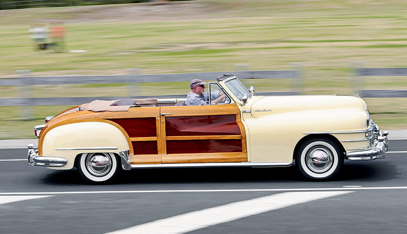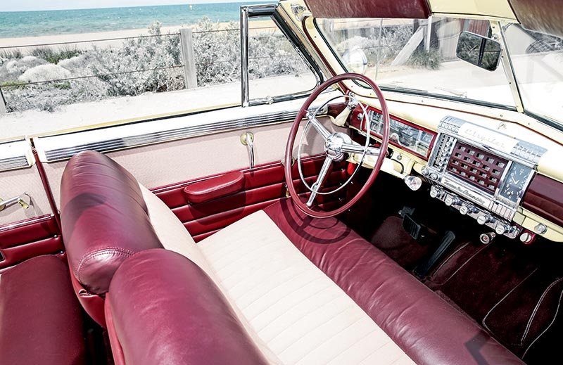 “I had no idea what a semi-automatic transmission was, so before my car arrived I got in touch with Mark Fenton from the Chrysler Restorers Club who has a ’46 or ’47 De Soto with the same transmission and he brought it around and taught me how to use it. The gearbox is described as four-speed but it’s really two separate ranges of two-speed. It has a normal column shift and high ratio is forward and down, reverse is back and up, Low is forward and up. For normal driving, with the car stationary and your foot on the brake, you de-clutch and put the car in High ratio Low gear then release the clutch and the car is in automatic and changes to High gear once you reach the right speed. You don’t need to use the clutch again until you stop or reverse. I’ve never used Low ratio as it’s very low.”