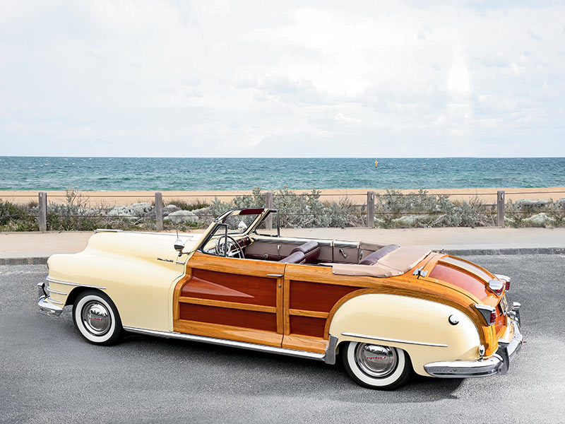 Almost two decades earlier, genuine woodies like our feature car had been at the top of the Detroit charts and owners were far from the Huarache sandals-wearing beach bums The Beach Boys harmonised about. More motoring works of art than just transport, these hand-built luxury automobiles were favoured by the corporate elite and Hollywood greats. They were cars to be seen in and, really, to compare Terry Black’s immaculate 1947 Chrysler New Yorker Town and Country with a surfing woody is a bit of an insult.