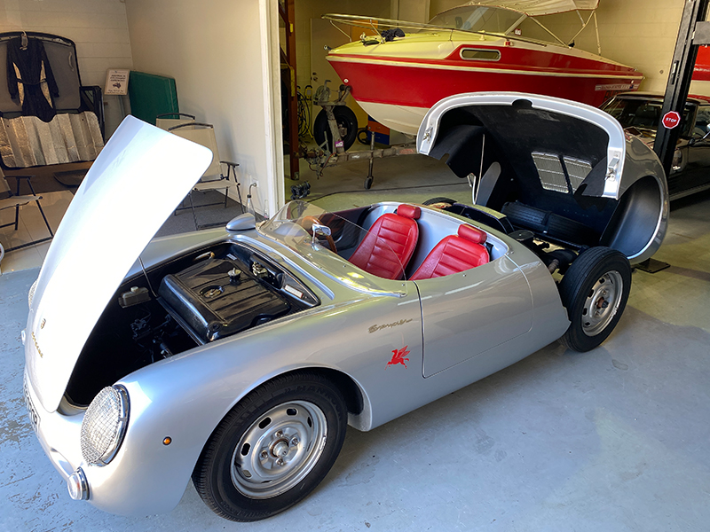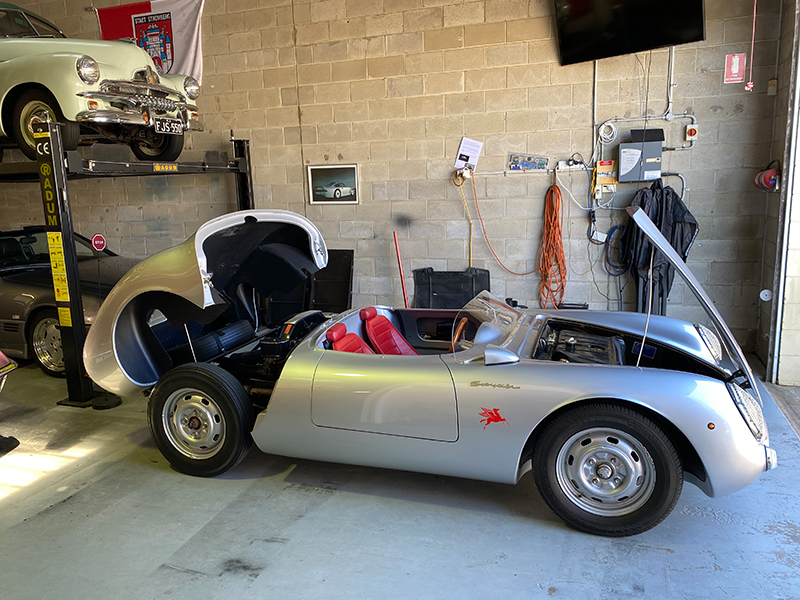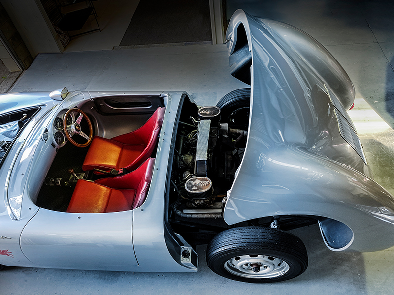 The Spyder sits pride of place in a somewhat eclectic collection of cars. “I basically love all cars. I’m not particularly about one brand. Being German, I’m a bit biased; I love Porsches and Mercedes, but I’ve also got a Corvette and a 1955 FJ, the same year as the Spyder.”