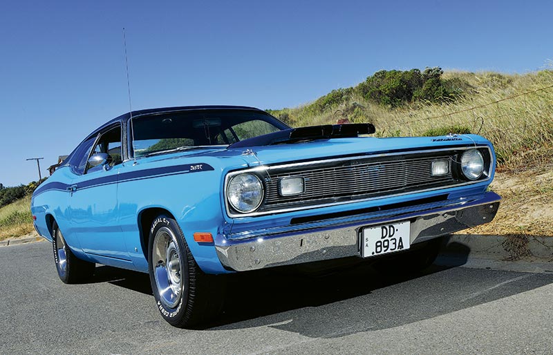 “I’m a Mopar boy…I really like the high-impact colours,” he says. “I’d been looking at ‘Cudas and Challengers, but I couldn’t find one I could afford. Then a mate said: Why don’t you look at Dusters? So I did, and I liked what I saw.”