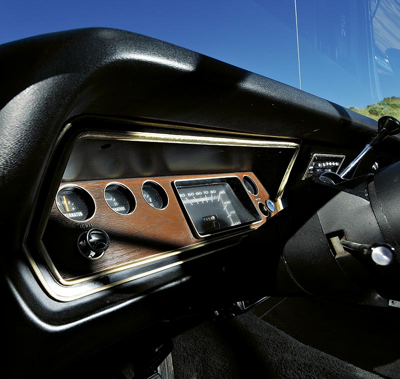 Actually, the only non-standard bit of the car is the 340 decal on the rump because, in reality, the car is an original 318 cubic-inch Duster, a popular engine choice back in the day. The real mystery is why the Californian owner specified the 340 sticker, because in every other way the Duster remained as per the Plymouth build sheet. And that includes touches we consider a bit pedestrian today: things like the split front bench seat and the column-shifter that controls the tough-as-nails 904 transmission. And what about the vinyl roof? Might be a while before we see that particular trend re-emerge into the muscle-car mainstream.