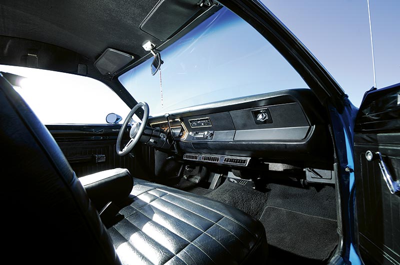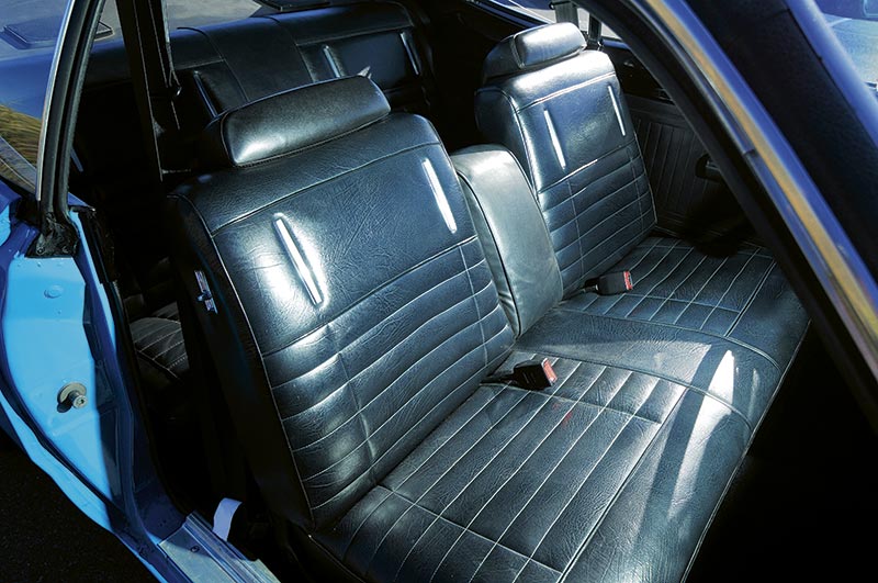 But somehow, even the vinyl roof looks right on Tony’s car and maybe that’s because it’s painted in one of those high-impact colours that first attracted our man to the Mopar corral all those years ago. In Plymouth-speak, the colour is called Basin Street Blue, but over at the Dodge showroom in 1972, the very same shade was known as Petty Blue, named after Richard of the moustache, sunglasses and cowboy hat, of course.