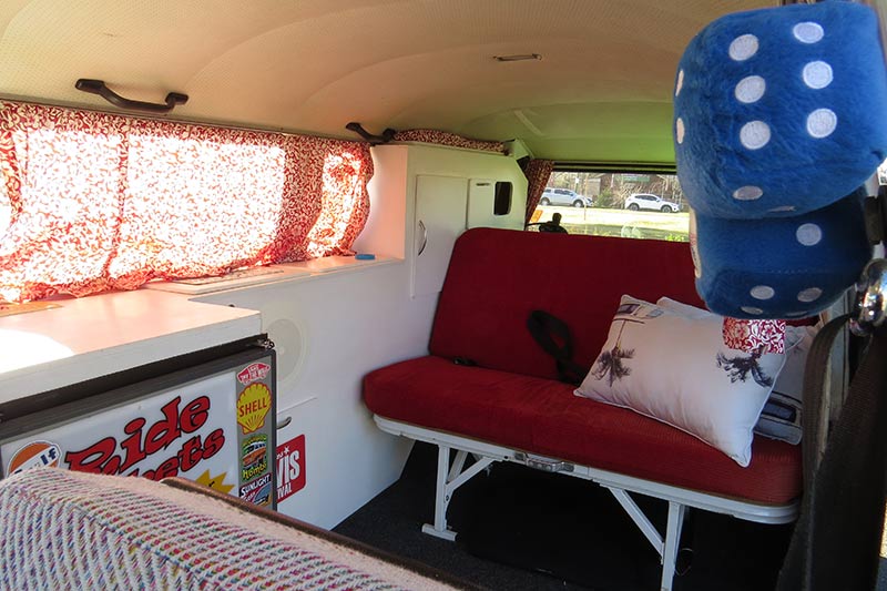 What do I like about them? They’re just cruisy, fun to drive, not fast, but it’s not about that – it’s about the trip. I really enjoy them. It’s my daily driver and we go away in it as well. My wife rolls her eyes a little, but ends up enjoying the trip even if it’s not as comfortable as our modern cars. The people before me put the fittings in the cabin. We had a bit of an accident with it, on a trip, so we ended up repairing it and repainting the lower section in the dove blue. That was also an opportunity to refit some of the interior and put our own little stamp on it.