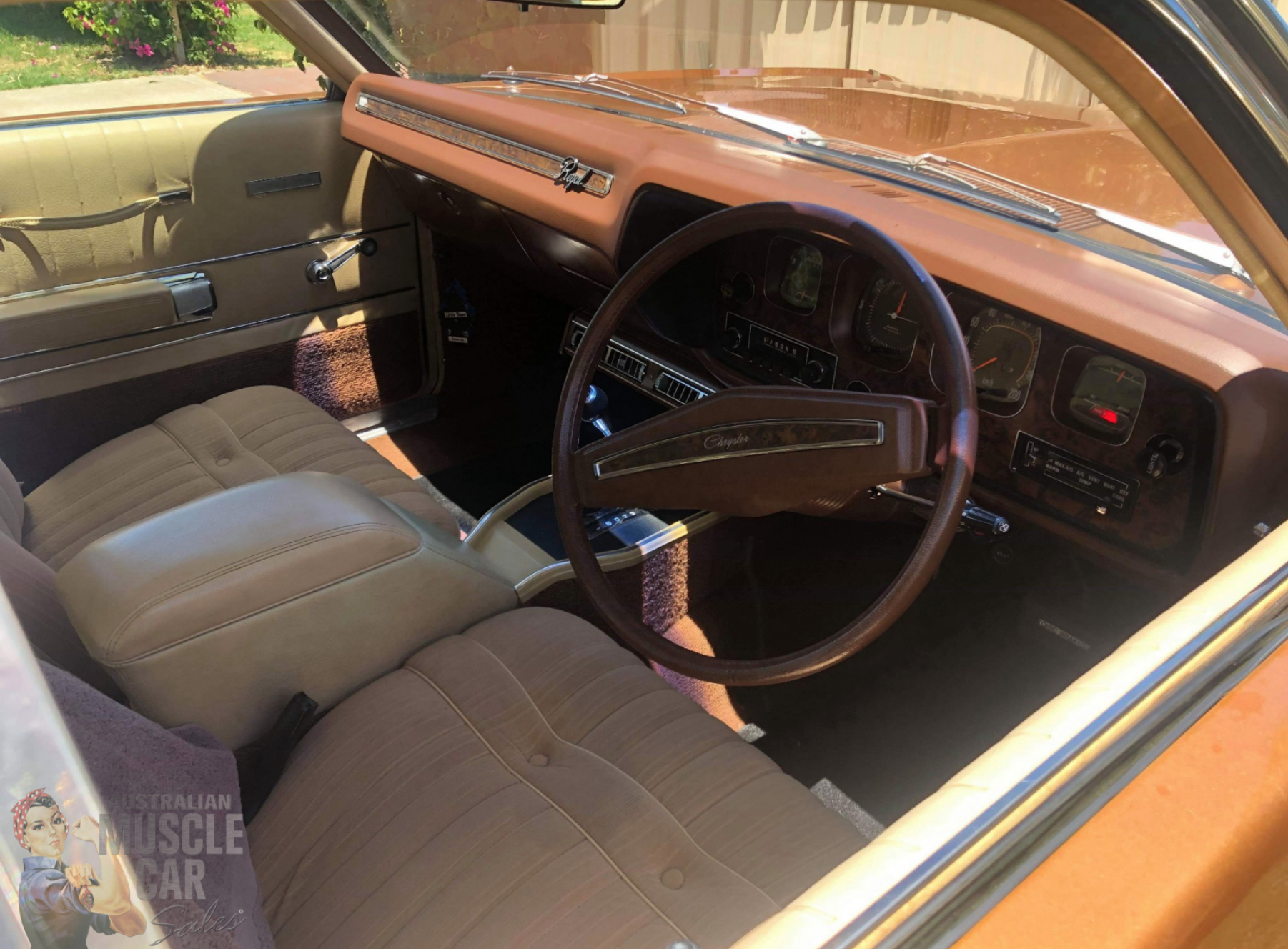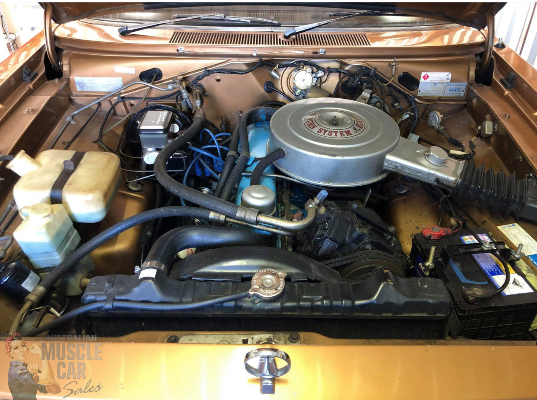 It was delivered new to Corowa Motors near the Vic/NSW border, with the 265ci Six, and BorgWarner auto; and fully optioned with vinyl roof, velour trim, tinted windows, bucket seats, console auto, power steering and AirTemp air-conditioning.