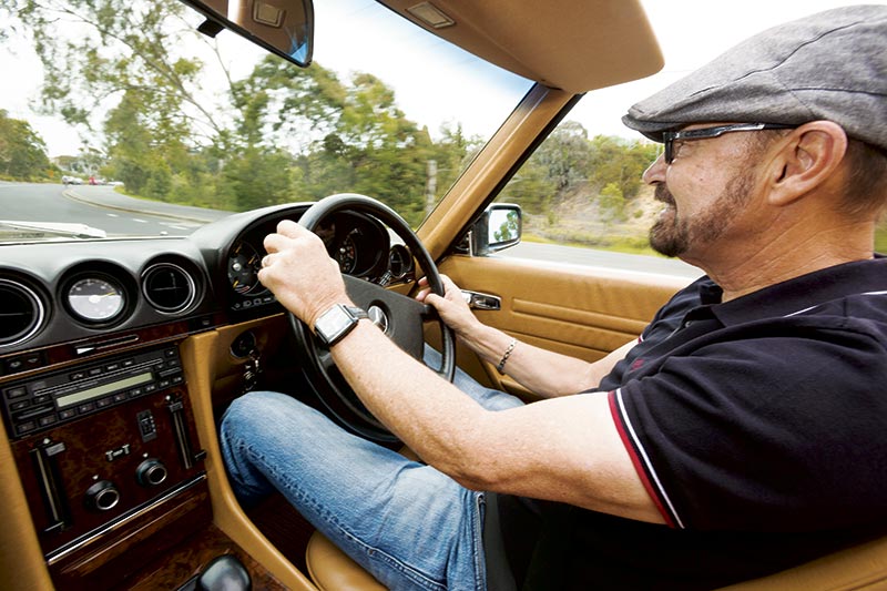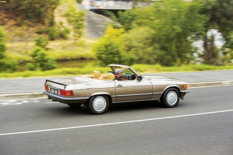 This one is an ’86 560SL. The model started off as a 350 or a 450 – the badges were the hint to capacities of the two V8s – and later went to a 380, 420, 500 and the big daddy of the bunch, the 560. Apparently the 560’s 5.6-litre, single-cam-per-bank V8 was an engine used in USA, Australia and Japan to help counter the loss of performance due to emission regulations strangling the engine. There were even 280 and 300SL six-cylinder models in some markets, too. I drove this one with the hardtop off because that’s how convertible cars should be enjoyed! Getting it off was easy: you simply undo a couple of clips, disconnect the wiring to the heated window and two people can grab hold of either side, lift it and walk it off. There’s a hardtop stand that comes with the lid so it can be safely stored; the idea is this car can be used year-round. You use the convertible top when you need to during summer and refit the hardtop for winter to make the car into a two-door sedan. It’s the best of both worlds and when you think about it, very sensible.