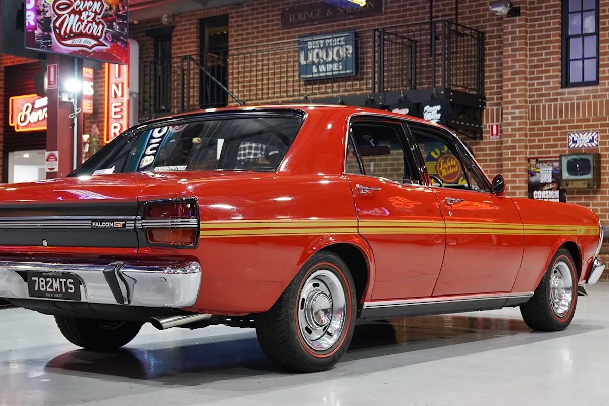 To the surprise of nobody, a bidding frenzy erupted when this superbly restored, genuine JG33 XY GT Falcon was put up with no reserve. Repainted in Track Red with black vinyl trim, as it left Ford’s Broady factory in 1970, it’s one of 10 XY GT’s finished in this full spec. It has a matching-numbers 351 Cleveland V8 and FMX auto, along with a nine-inch diff, as well as power-assist front discs and trademark five slotters with red-stripe tyres. It has been with the seller since 2013.