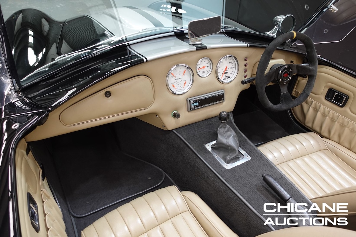 The professionally upholstered cream interior is finished with Cobra insignia detailing and presents in excellent condition, along with its white faced classic style ‘autometer’ gauges reinforcing the quality of the overall build. The cabin strikes the right balance between classic styling and usable refinement.