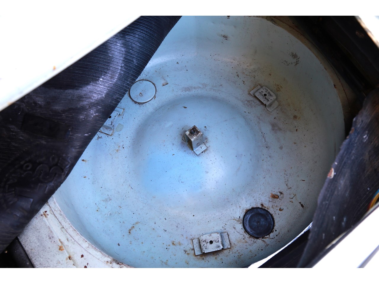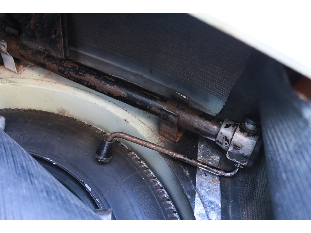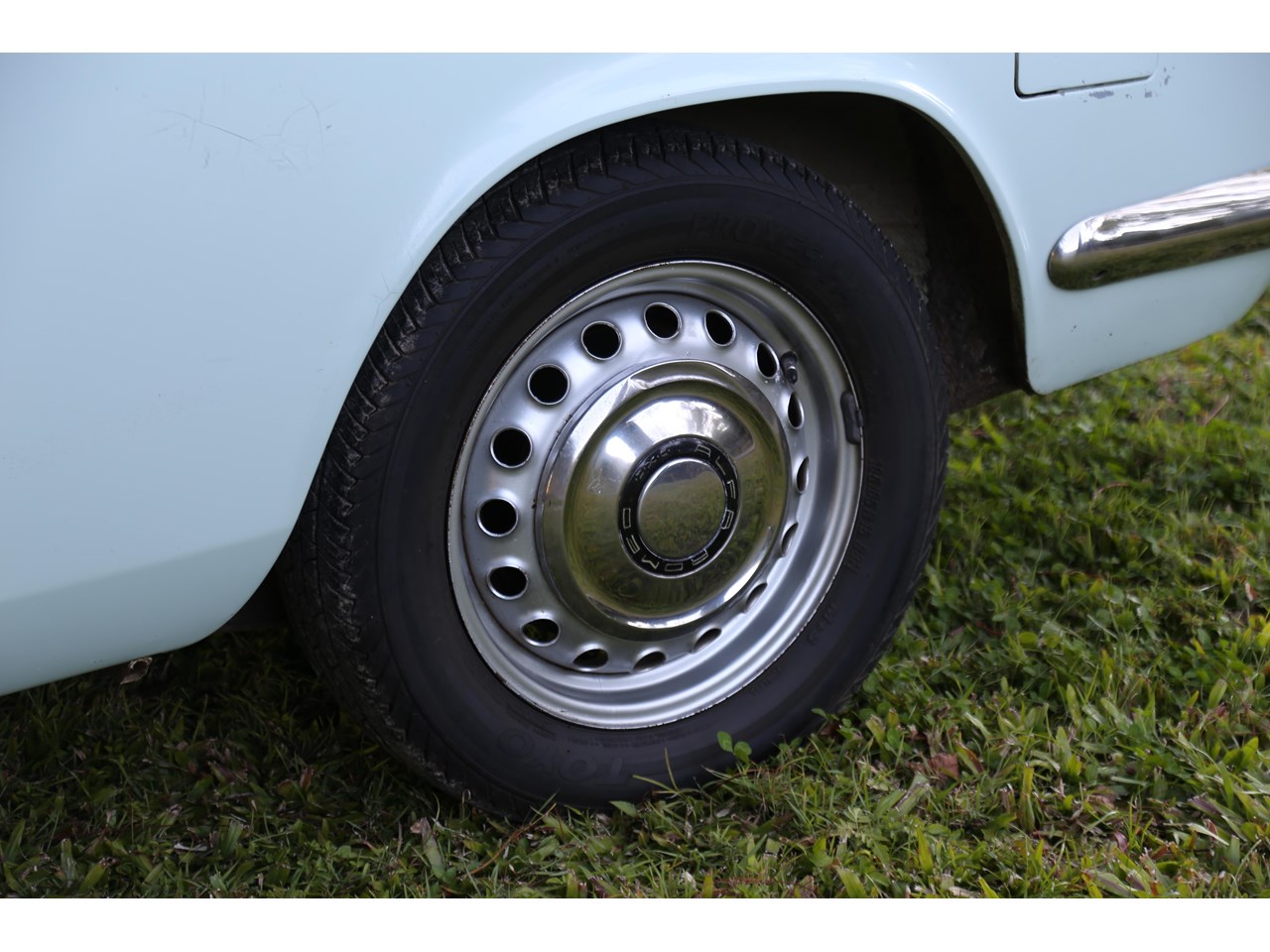 The wheels are the original and look like they have never been repainted. All the brightwork is correct and in fine condition. The underside of the car whilst aged is solid.