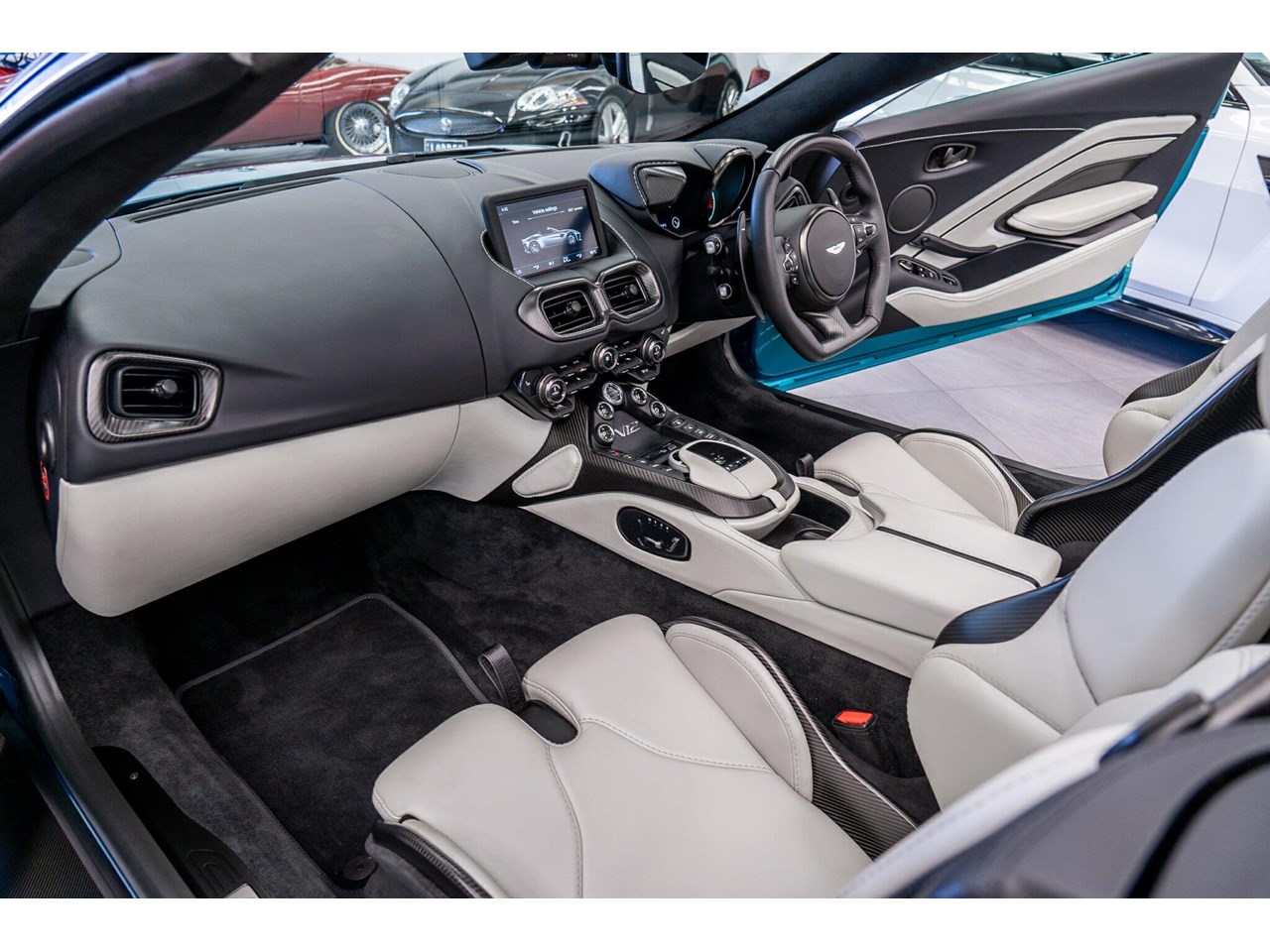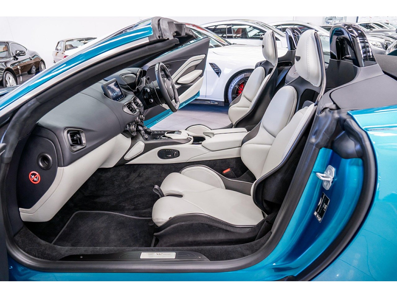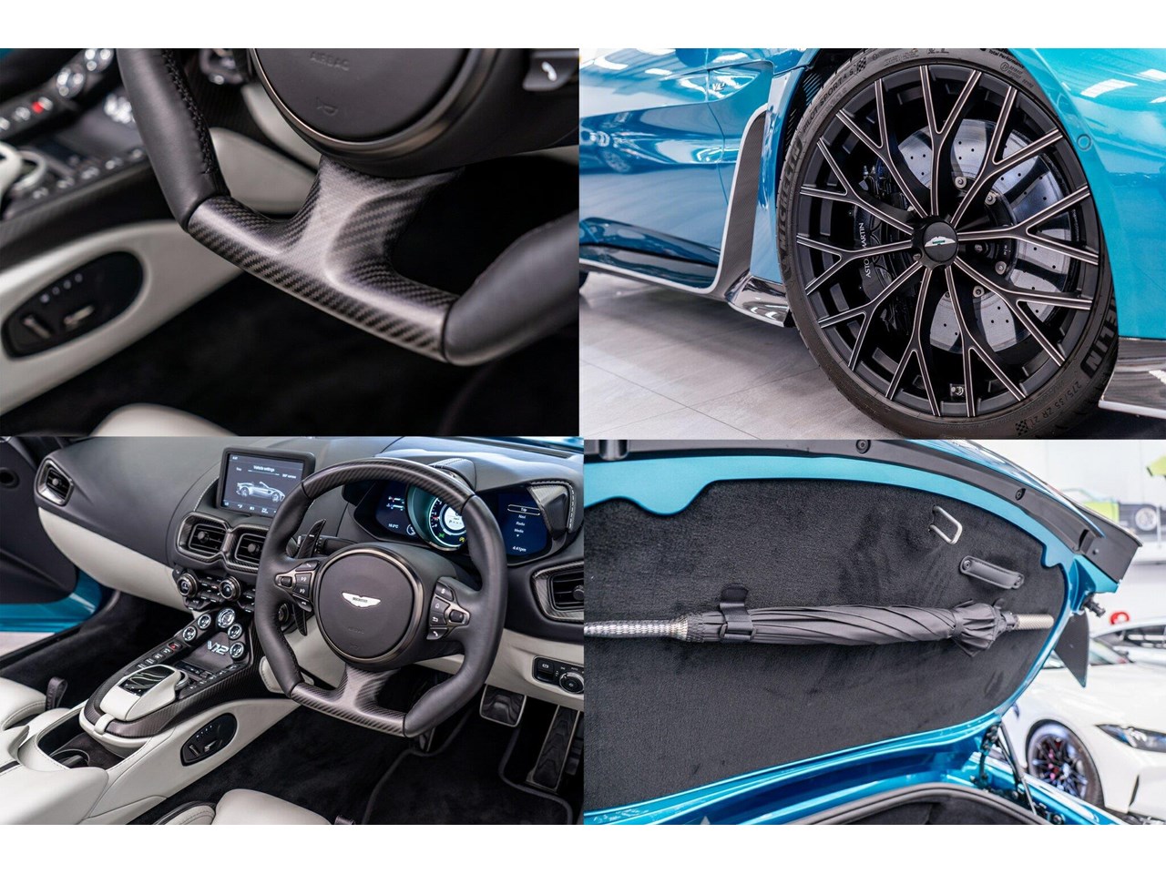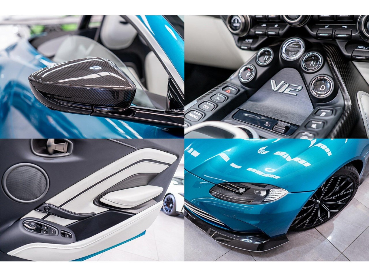 Beautifully presented with travelled only 1,402km from new and literally still in as brand new car condition, absolutely unmarked brand new condition inside and out, barely and rarely driven on public road from new, garaged and stored undercover from new along side with a large rare exotic cars collection. ** UNDER ASTON MARTIN NEW CAR WARRANTY ** MOST HIGHLY OPTIONED with most highly desirable sought after ** CARBON FIBRE interior package, Exterior package, Finished in stunning Tayos Turquoise Metallic with Livery Scheme Pinstripes, two tone contrast Beige and obsidian black leather interior with double stitching throughout and much more.