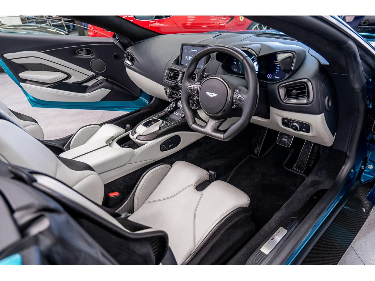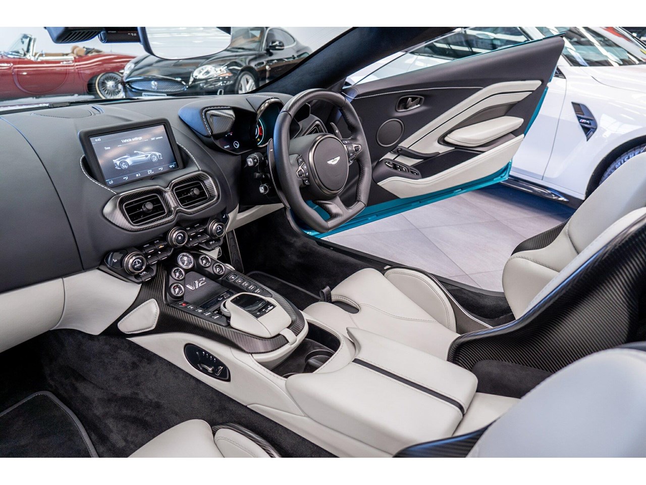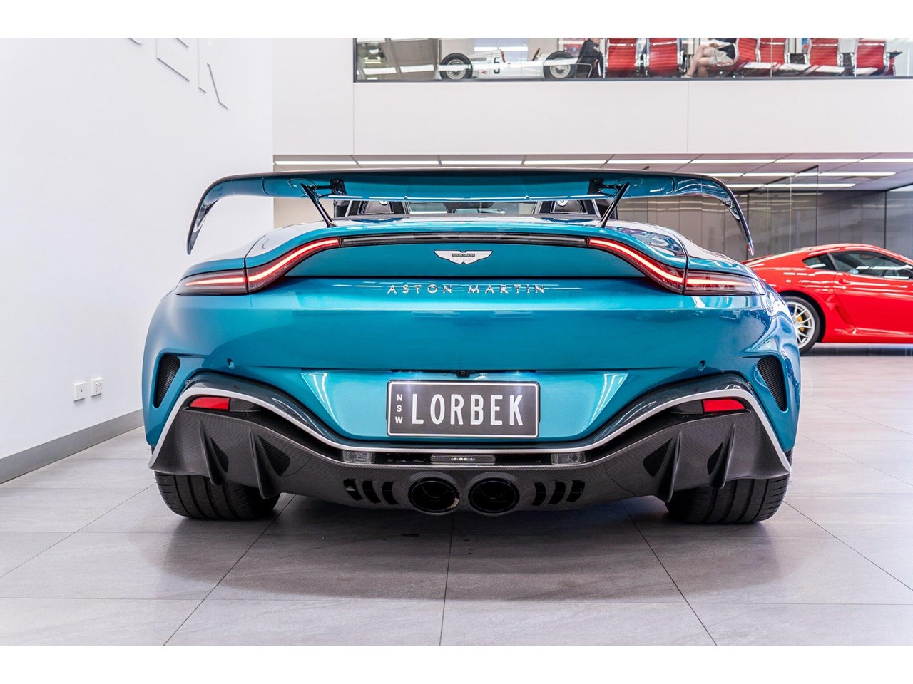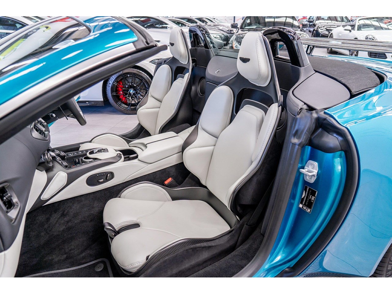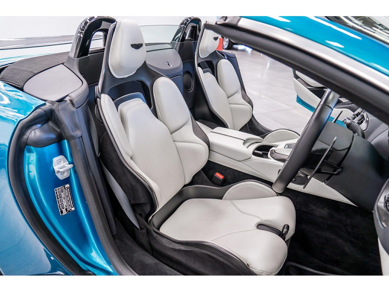 Beautifully presented with travelled only 1,402km from new and literally still in as brand new car condition, absolutely unmarked brand new condition inside and out, barely and rarely driven on public road from new, garaged and stored undercover from new along side with a large rare exotic cars collection. ** UNDER ASTON MARTIN NEW CAR WARRANTY ** MOST HIGHLY OPTIONED with most highly desirable sought after ** CARBON FIBRE interior package, Exterior package, Finished in stunning Tayos Turquoise Metallic with Livery Scheme Pinstripes, two tone contrast Beige and obsidian black leather interior with double stitching throughout and much more.