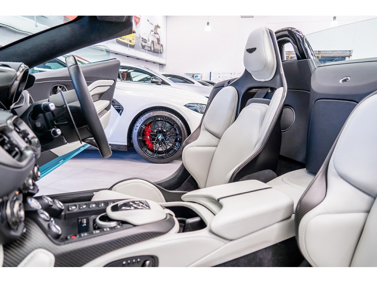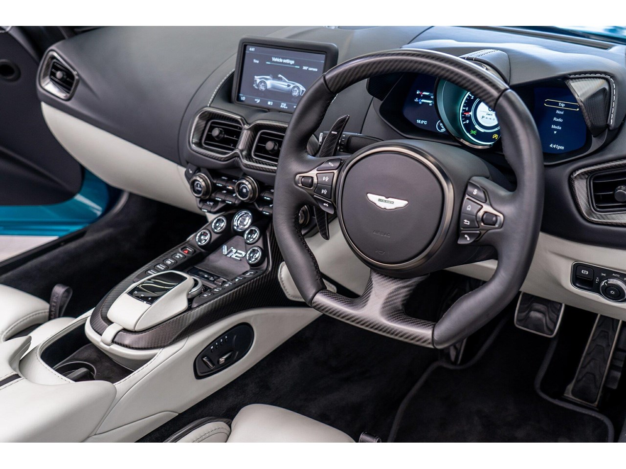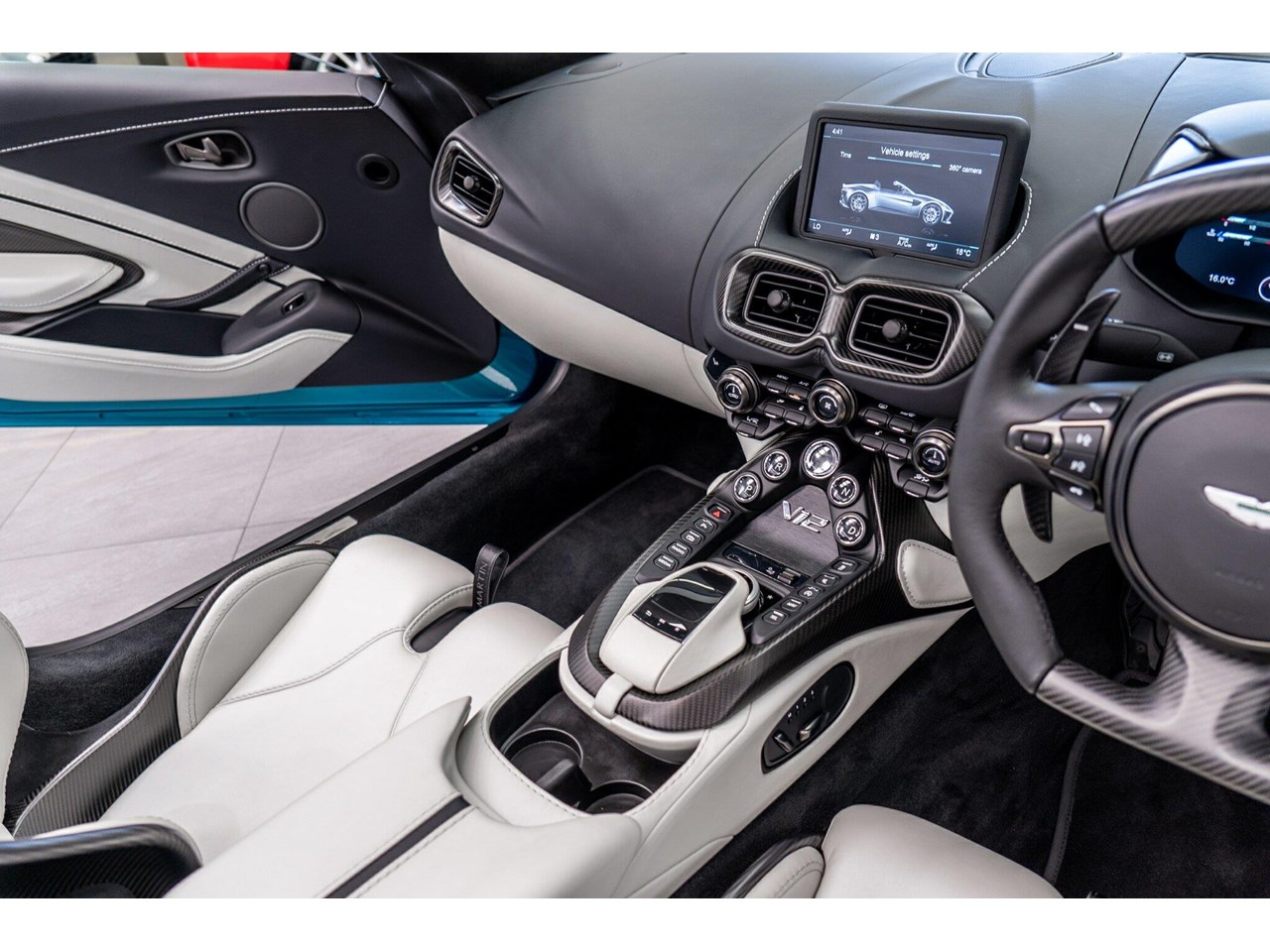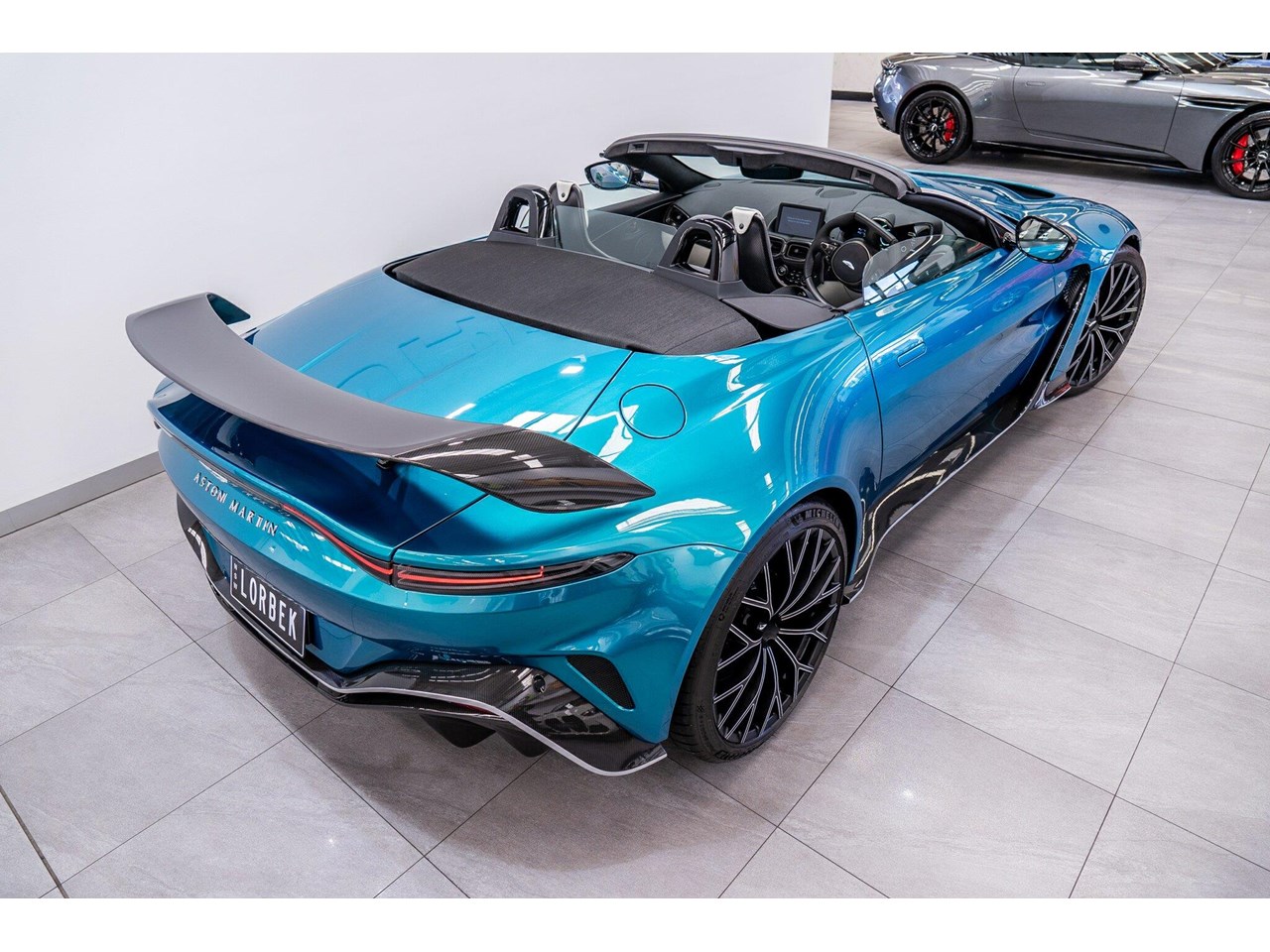 Beautifully presented with travelled only 1,402km from new and literally still in as brand new car condition, absolutely unmarked brand new condition inside and out, barely and rarely driven on public road from new, garaged and stored undercover from new along side with a large rare exotic cars collection. ** UNDER ASTON MARTIN NEW CAR WARRANTY ** MOST HIGHLY OPTIONED with most highly desirable sought after ** CARBON FIBRE interior package, Exterior package, Finished in stunning Tayos Turquoise Metallic with Livery Scheme Pinstripes, two tone contrast Beige and obsidian black leather interior with double stitching throughout and much more.