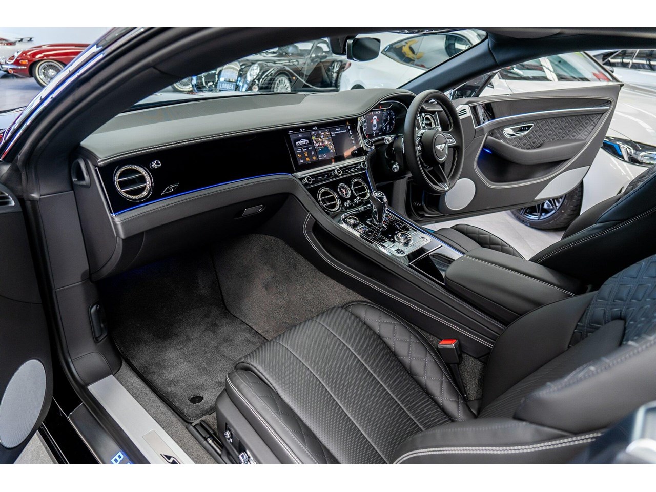2023 Bentley Continental 3S MY23 GT S Onxy Black 8 Speed Automatic Coupe. Bentley Continental GT V8 S Coupe 2023. FACTORY BENTLEY NEW CAR WARRANTY UNTIL : 09/05/2026. travelled only 282 delviery kms since new, barely and rarely driven on public road and is in brand new condition inside and out, ( new car delivery blue protector film still on the illuminated treadplate ), garaged along side large collection of special exotic cars, Finished in the most stunning colour of Blackline specification package with exterior colour in onyx black with beluga black interior, special bespoke order in diamond quilting inserts with full black pack and black matrix grille, Carbon fibre exterior package, complemented with the most visually striking factory 22`` ten-spoke Sports alloy in black. This is the most beautiful, sumptuous luxurious colour combination. Must be seen and will be instantly fully appreciated.