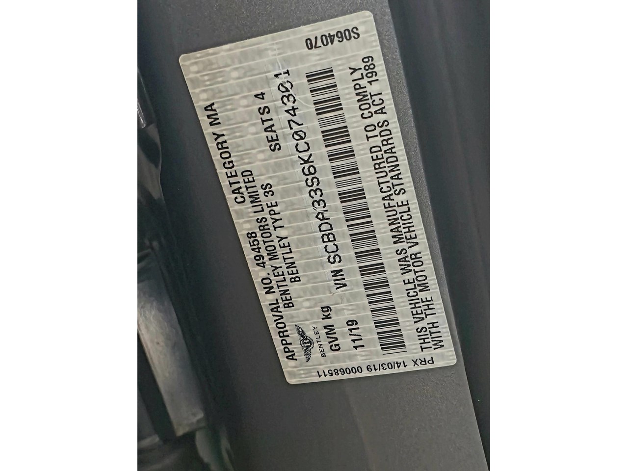 | Title | 2019 BENTLEY CONTINENTAL 3S MY20 |