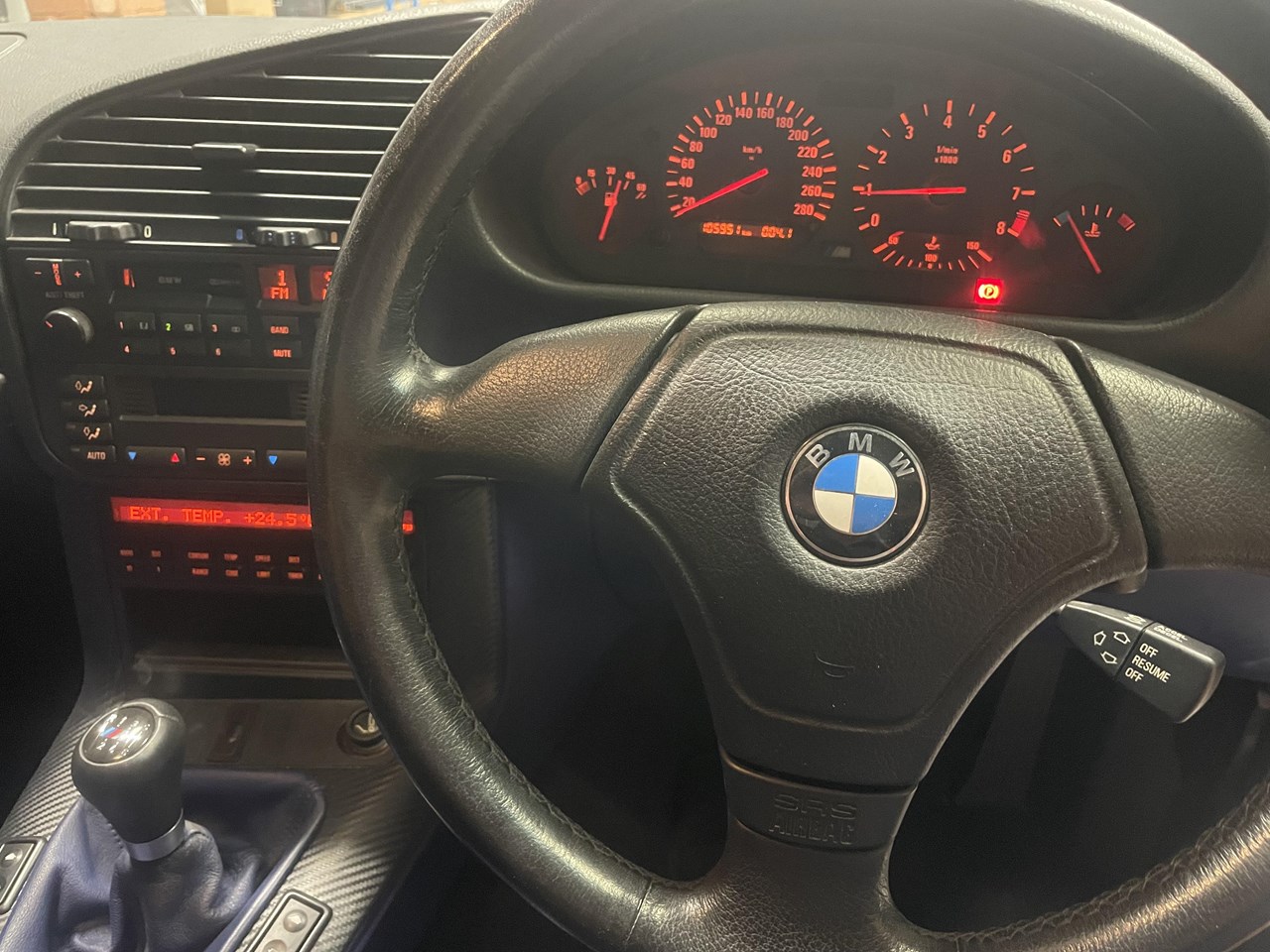 Along with its excellent performance, (5.5 seconds 0-100KM/H), the E36 M3 was also praised for its handling, thanks to its well-tuned suspension and near-perfect 50/50 weight distribution. The M3 has driver's and passenger airbags, ABS brakes, air conditioning, remote central locking and integrated security system plus 17" alloy wheels, power steering, power door mirrors, limited slip diff (LSD), a full body kit, power windows and a premium sound system with 10 speakers.