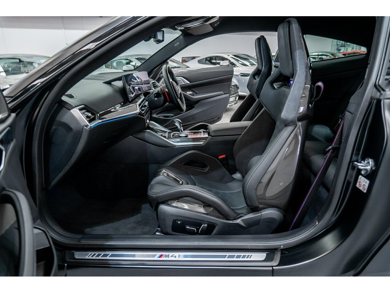 2024 BMW M4 G82 Competition M xDrive Frozen Black 8 Speed Automatic Coupe. BMW M4 Competition X-Drive 2025 MY24 (375Kw/650Nm). Travelled only 3,283km from new and still in pristine car condition inside and out, garaged and sparingly driven from new Special order in stunning INDIVIDUAL Frozen matte Black with full ash black Merino leather interior and full M interior Carbon Fibre trim finishing package.