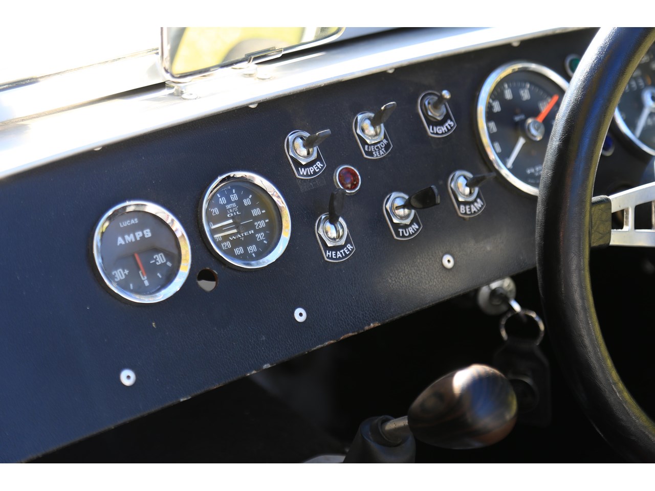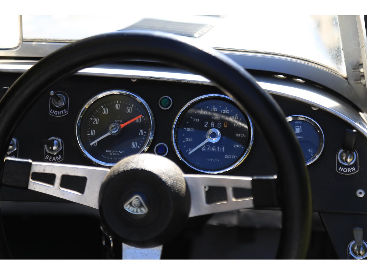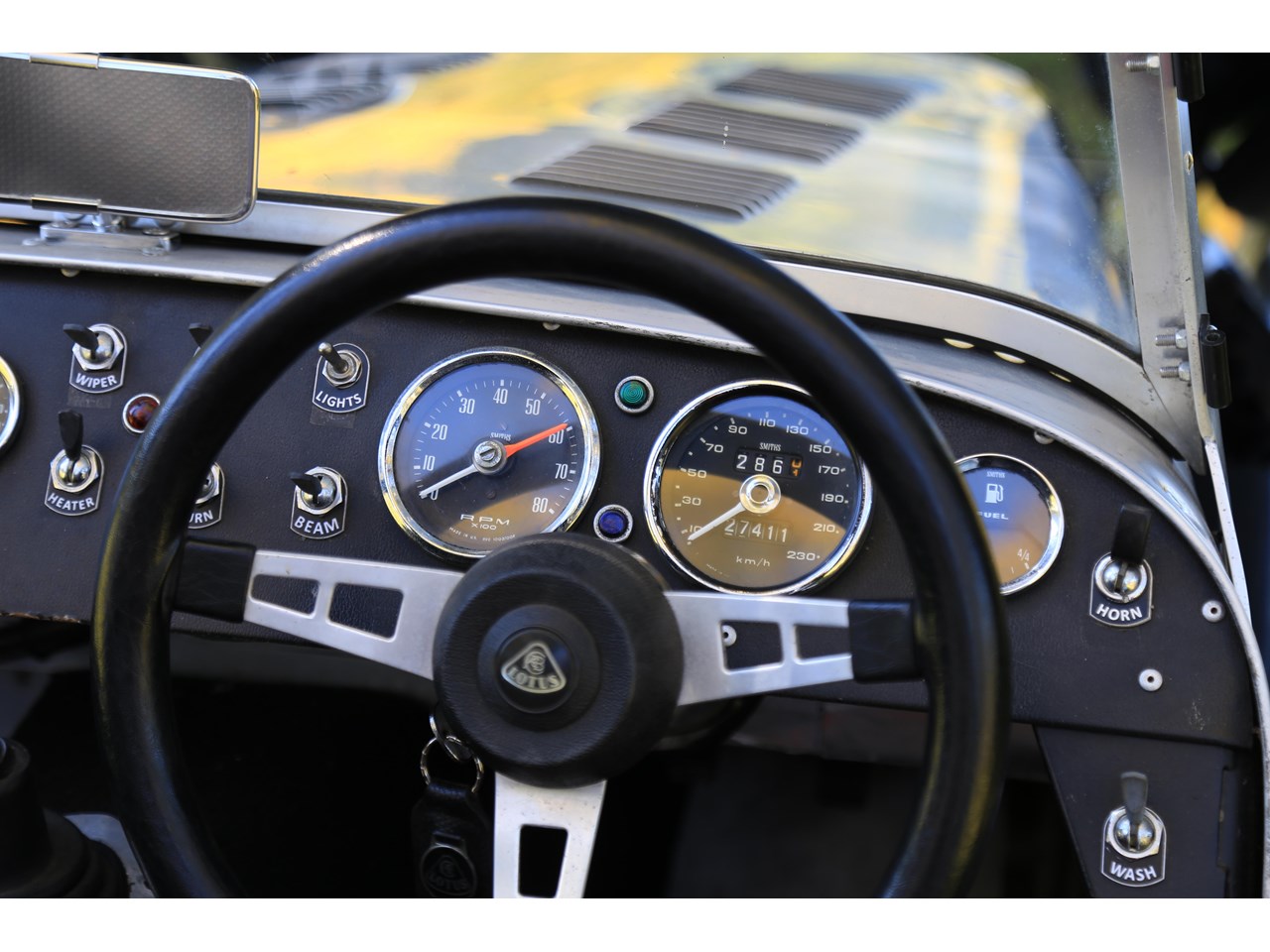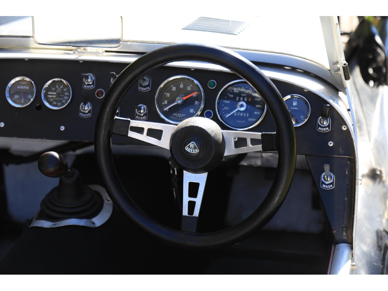 Start the engine and you immediately hear the classic tone of a Lotus Twin Cam engine. In front of you is a dash with an array of early Smiths gauges and toggle switches which look pin sharp and appealing to the eye.