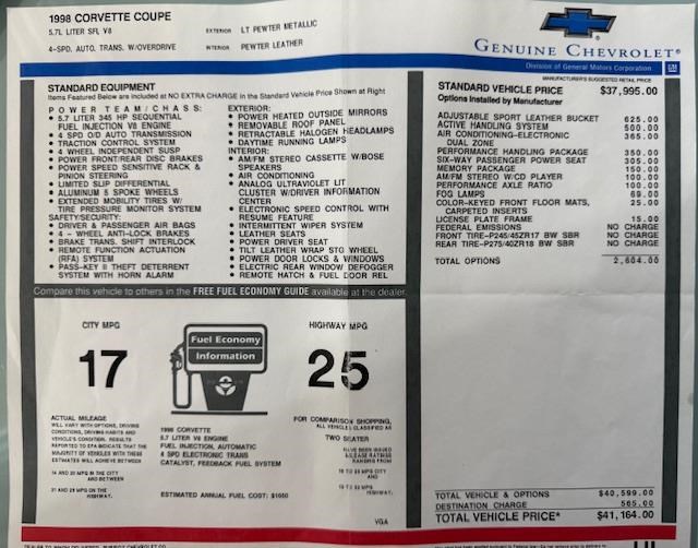 | Title | 1998 CHEVROLET CORVETTE C5 Auto |