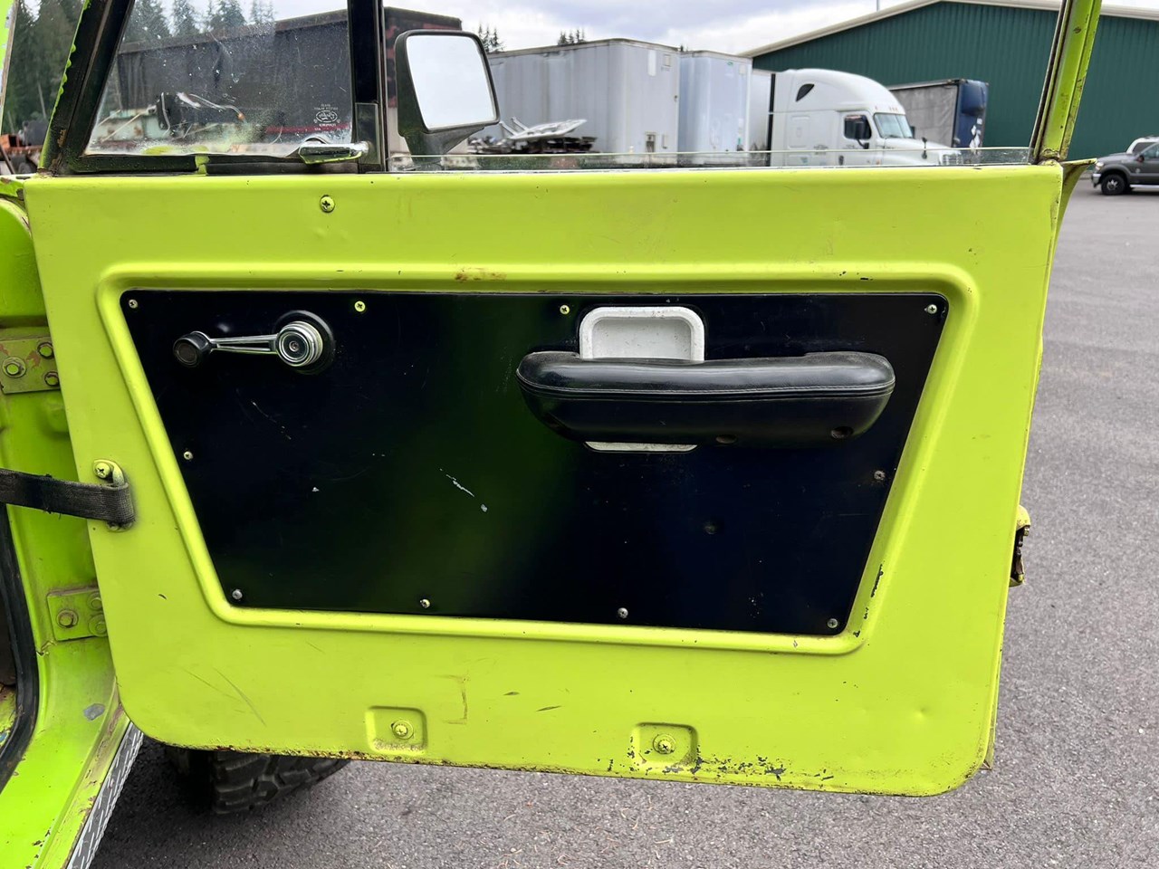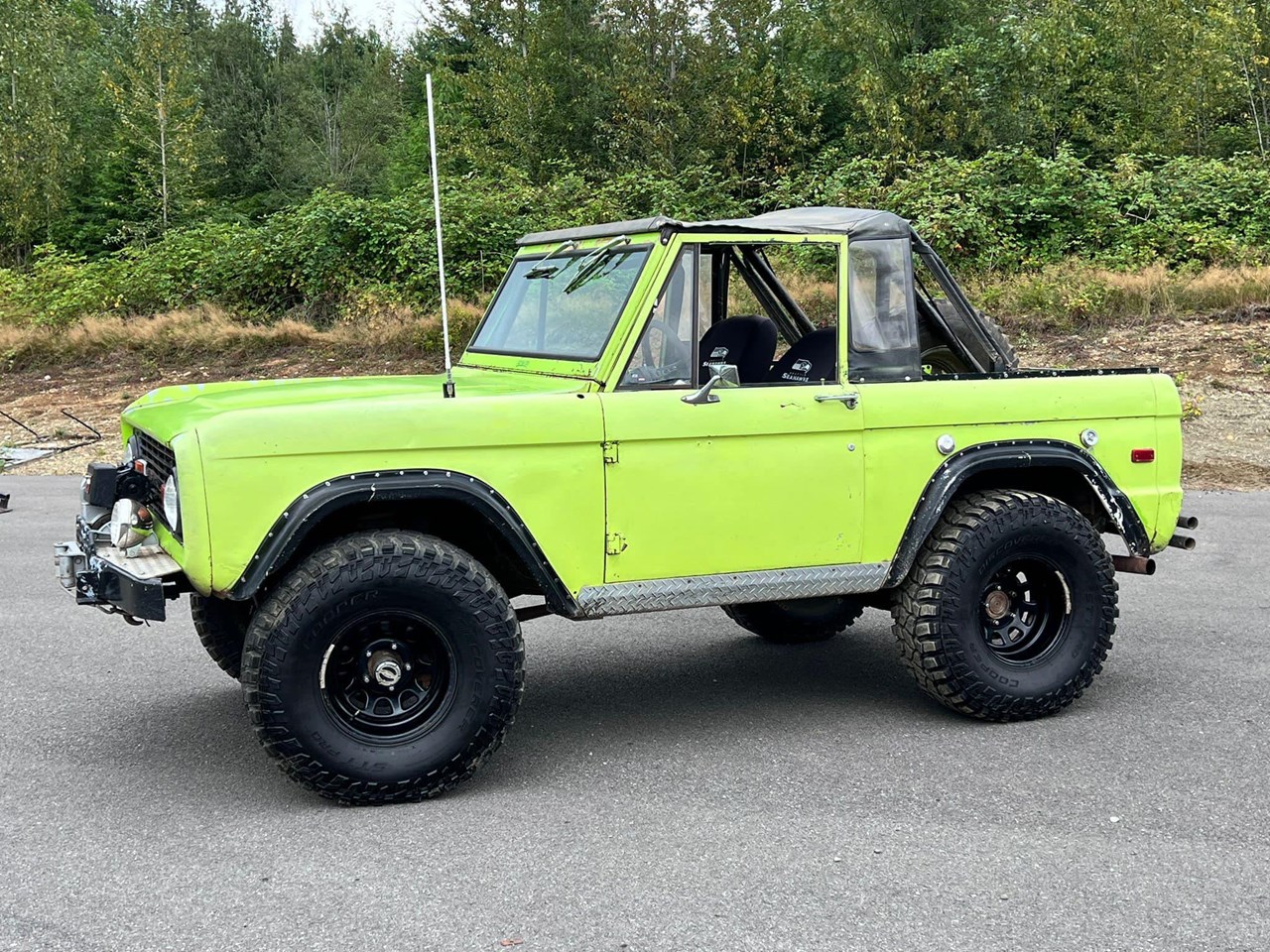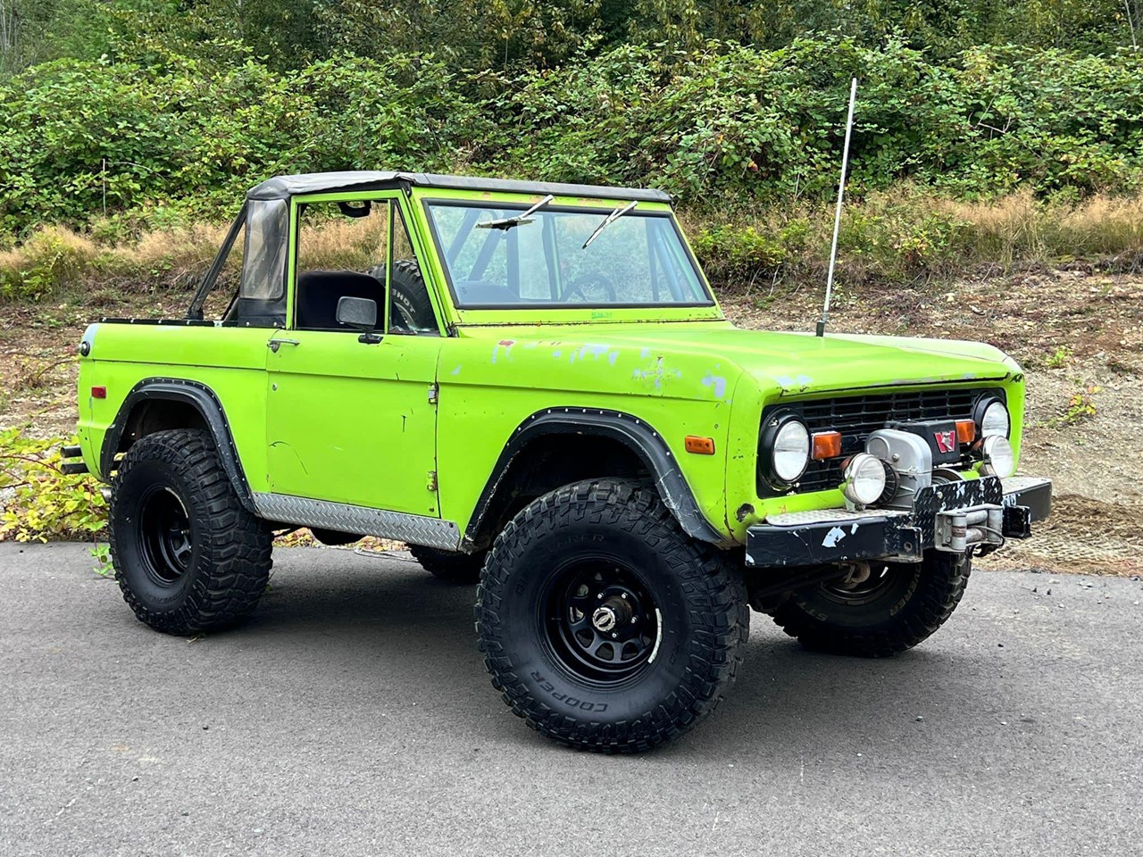 For under $60K, its hard to find a strong running 1st Gen Bronco that you wont put your feet through the floor boards, and at this price, you usually need to do major rust repairs, or rebuild the drivetrain. You wont need to do either here, just drive it! Great camping, off road or daily driver that you wont lose in the parking lot being Grabber Lime! If the color really offends you, but the car fits your price point, then just spray bomb the tub in rhino liner in a weekend and wrap the exterior whatever colour you choose.