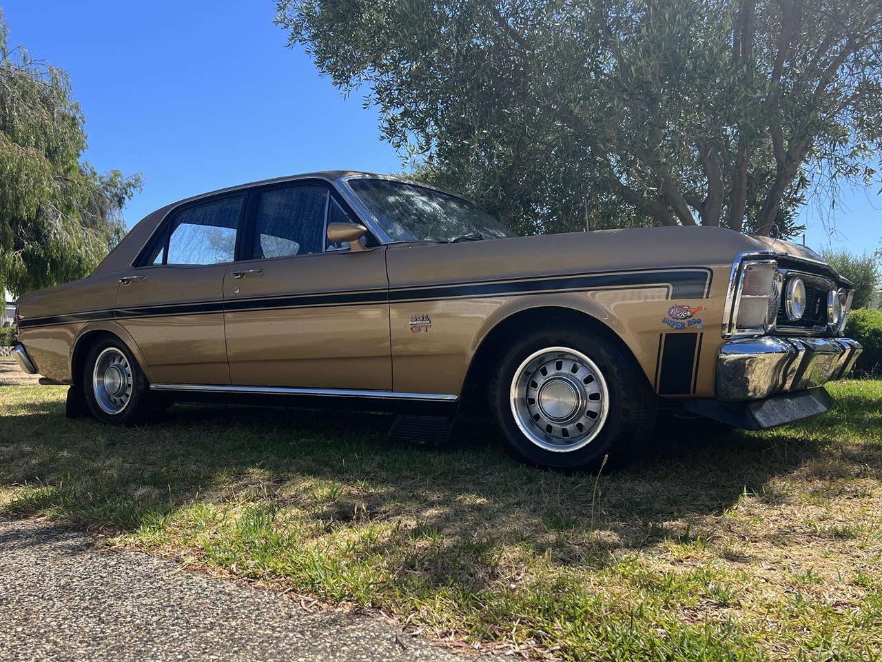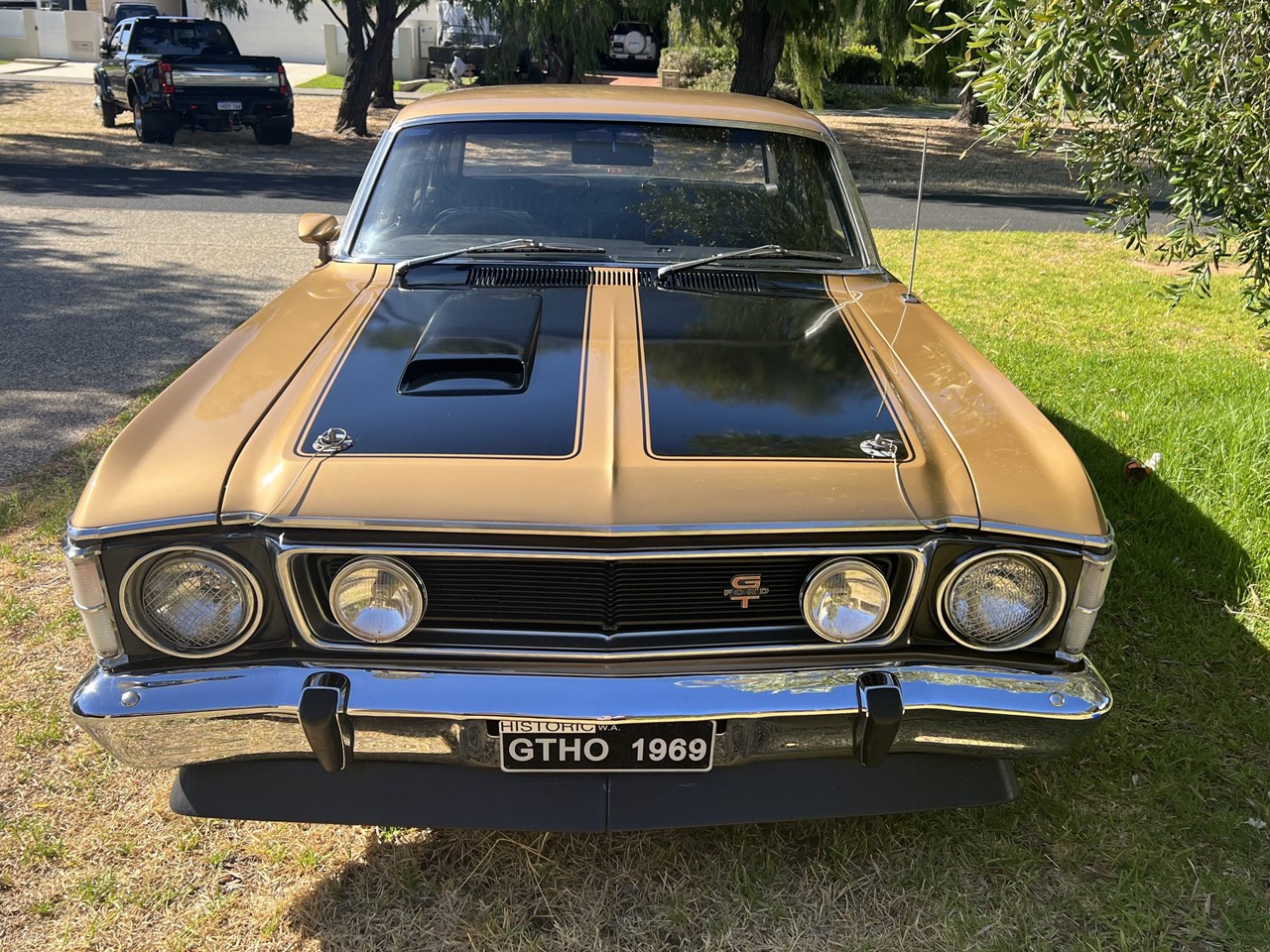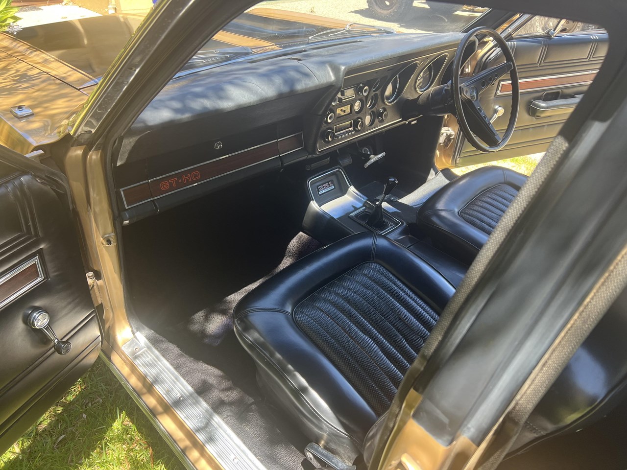FOR SALE is a pedigree SURVIVOR GT-HO Phase 1 in Grecian Gold with Black trim. According to the XW GT-HO Phase 1 Register, expertly complied by GT Historian Ross Vasse, this particular GT-HO is Build Number 200 of the 260 Phase 1 GT-HOs built by Ford. All matching numbers, this GT-HO is one of 35 painted in Grecian Gold, one of 31 with the black interior and one of 11 with the exact build specification.