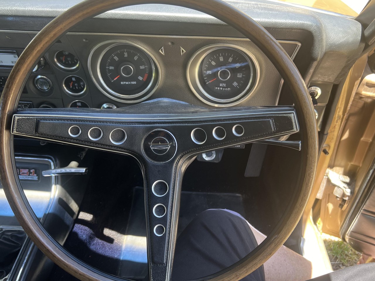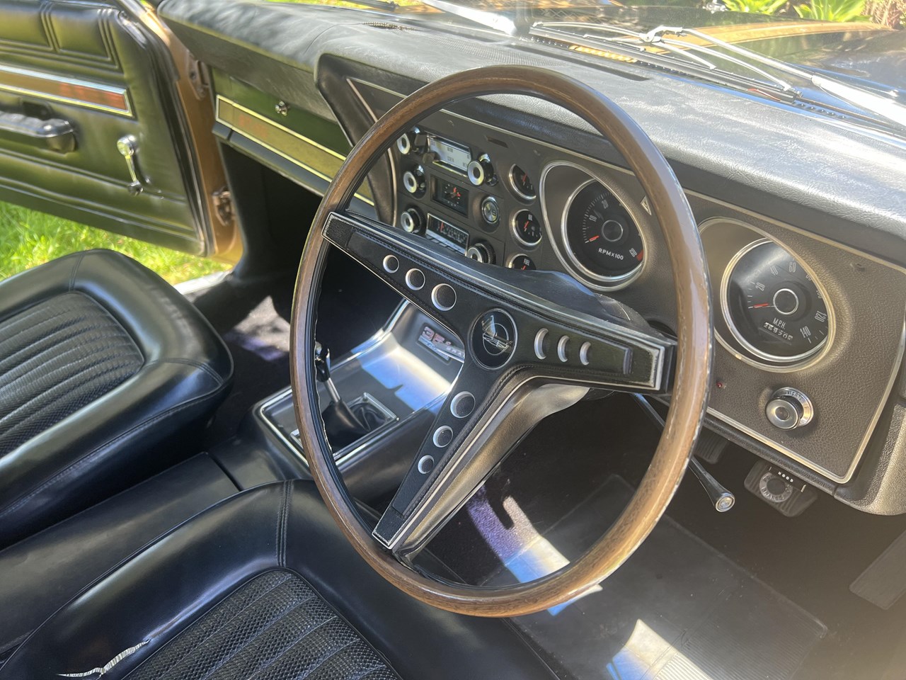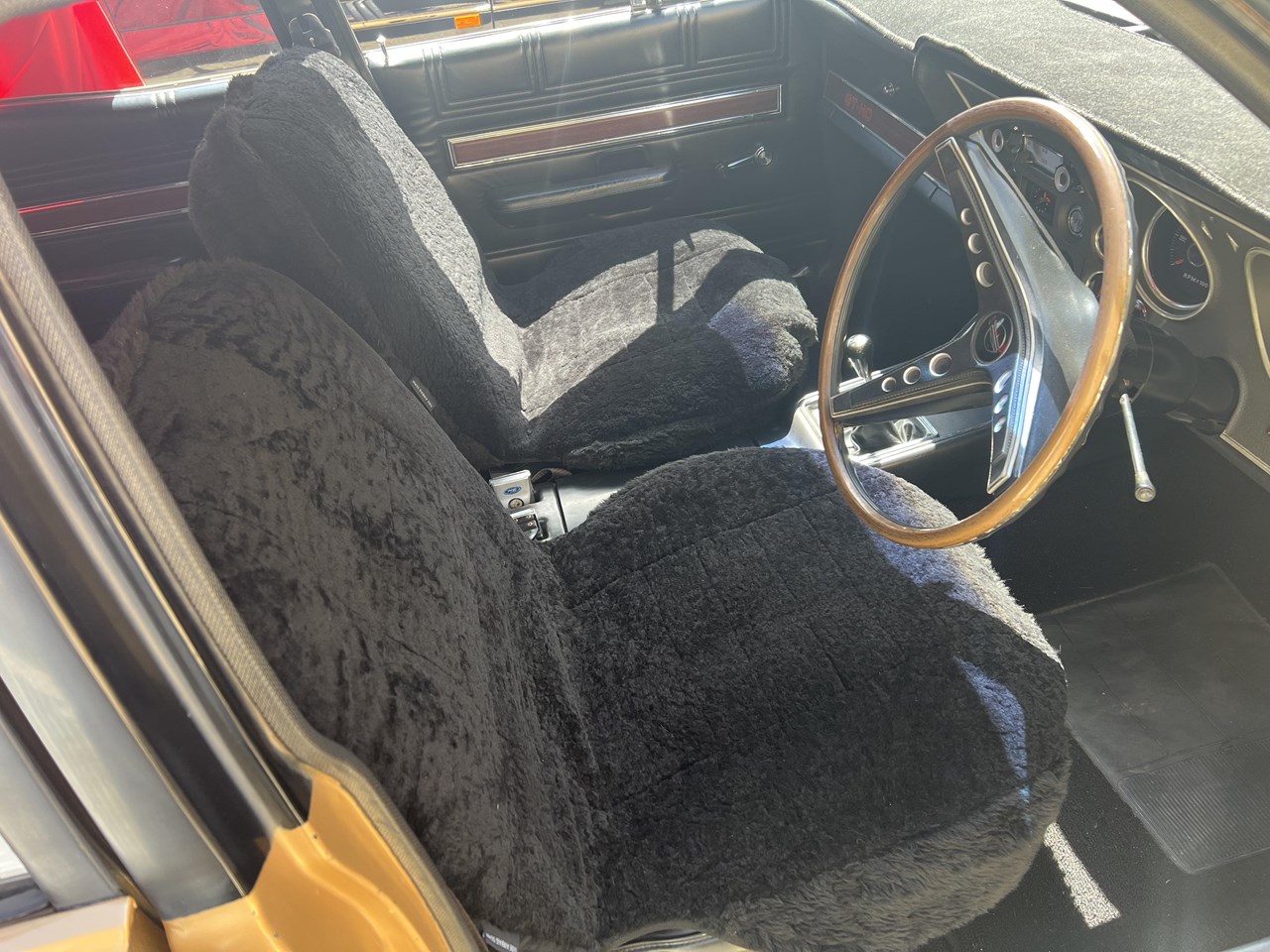 FOR SALE is a pedigree SURVIVOR GT-HO Phase 1 in Grecian Gold with Black trim. According to the XW GT-HO Phase 1 Register, expertly complied by GT Historian Ross Vasse, this particular GT-HO is Build Number 200 of the 260 Phase 1 GT-HOs built by Ford. All matching numbers, this GT-HO is one of 35 painted in Grecian Gold, one of 31 with the black interior and one of 11 with the exact build specification.