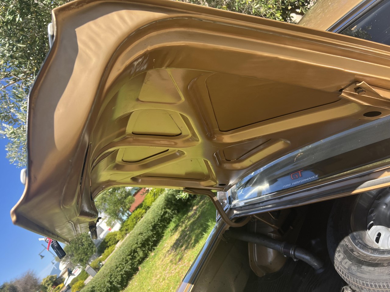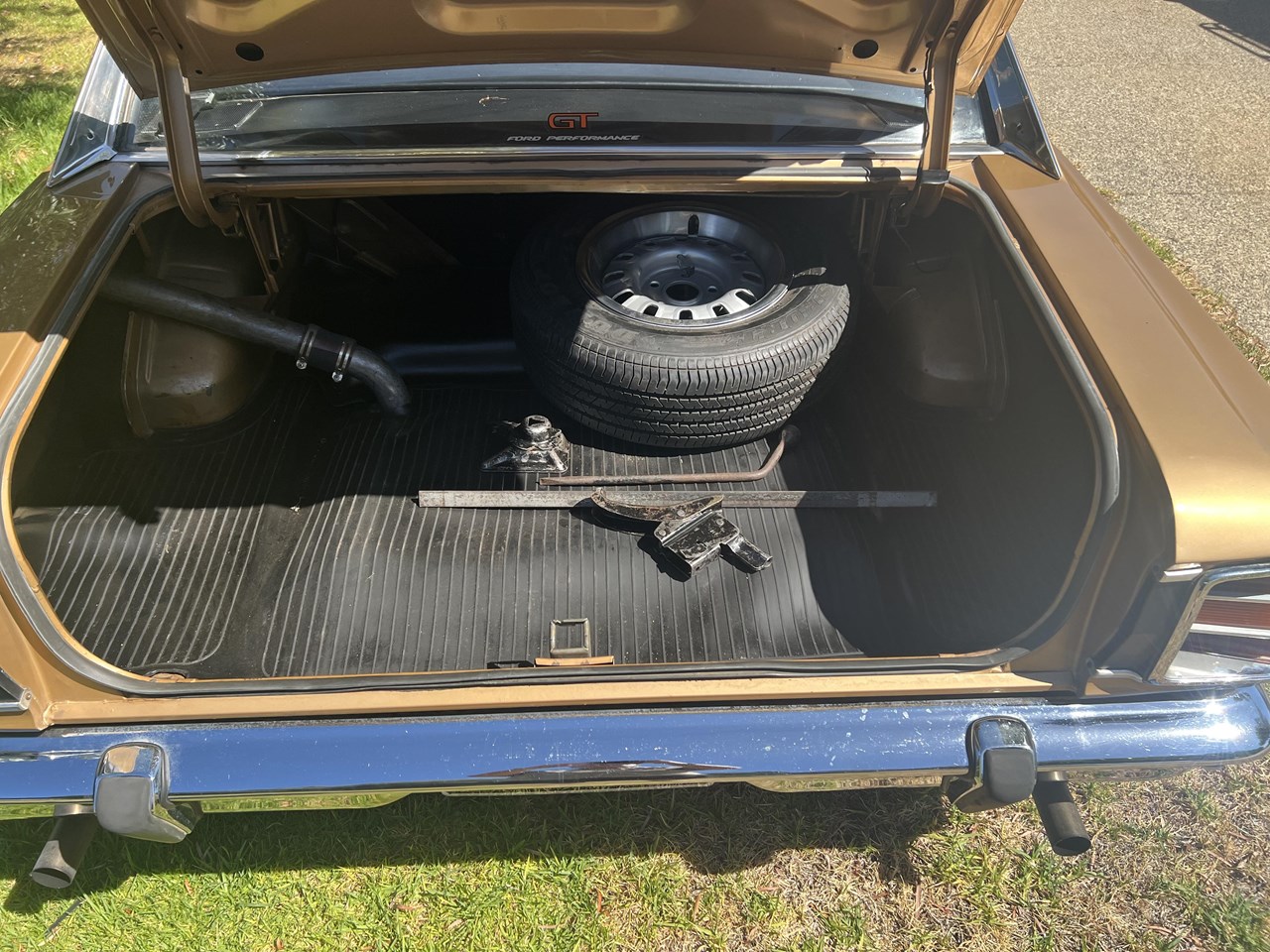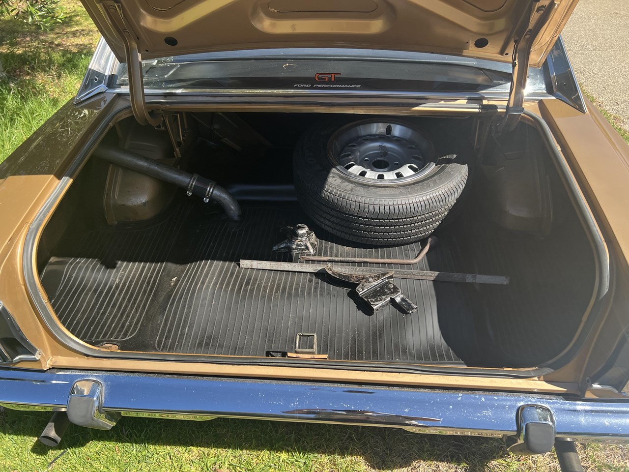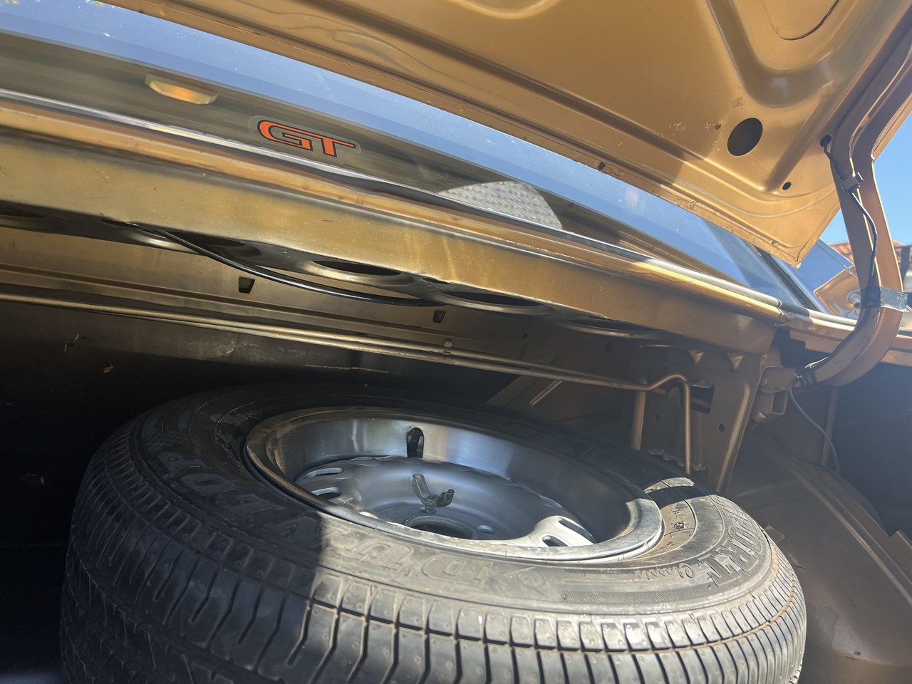 Keen GT enthusiasts will notice the original fan shroud, coil, battery terminals, Buddy Bar Manifold, radiator support and shock tower stampings and will then surmise what a rare find this GT-HO really is. The GT-HO also features the original crash pad, hood lining, 36 gallon tank, a new rubber boot mat and a Dunlop Sports radial spare and factory tools.