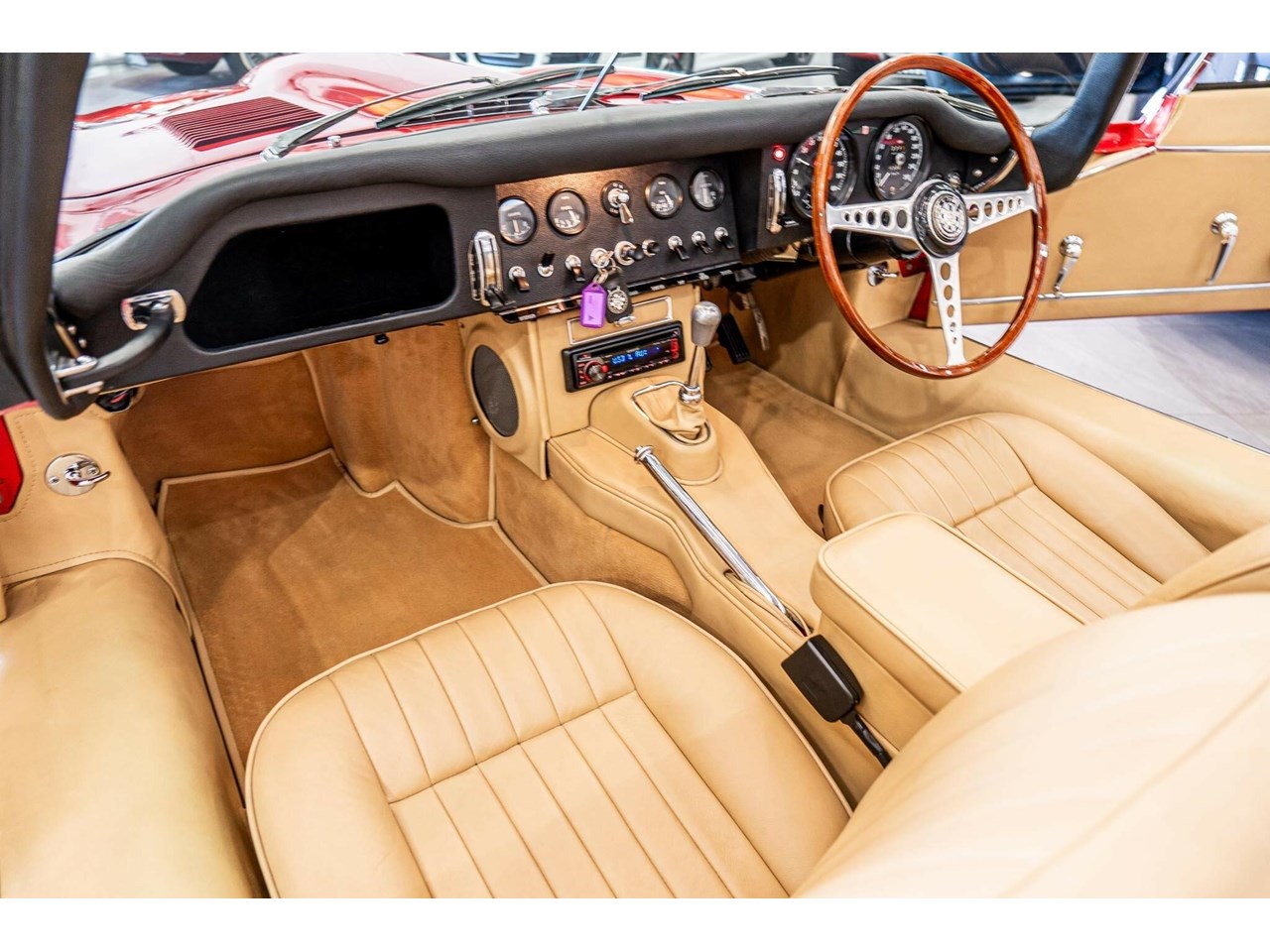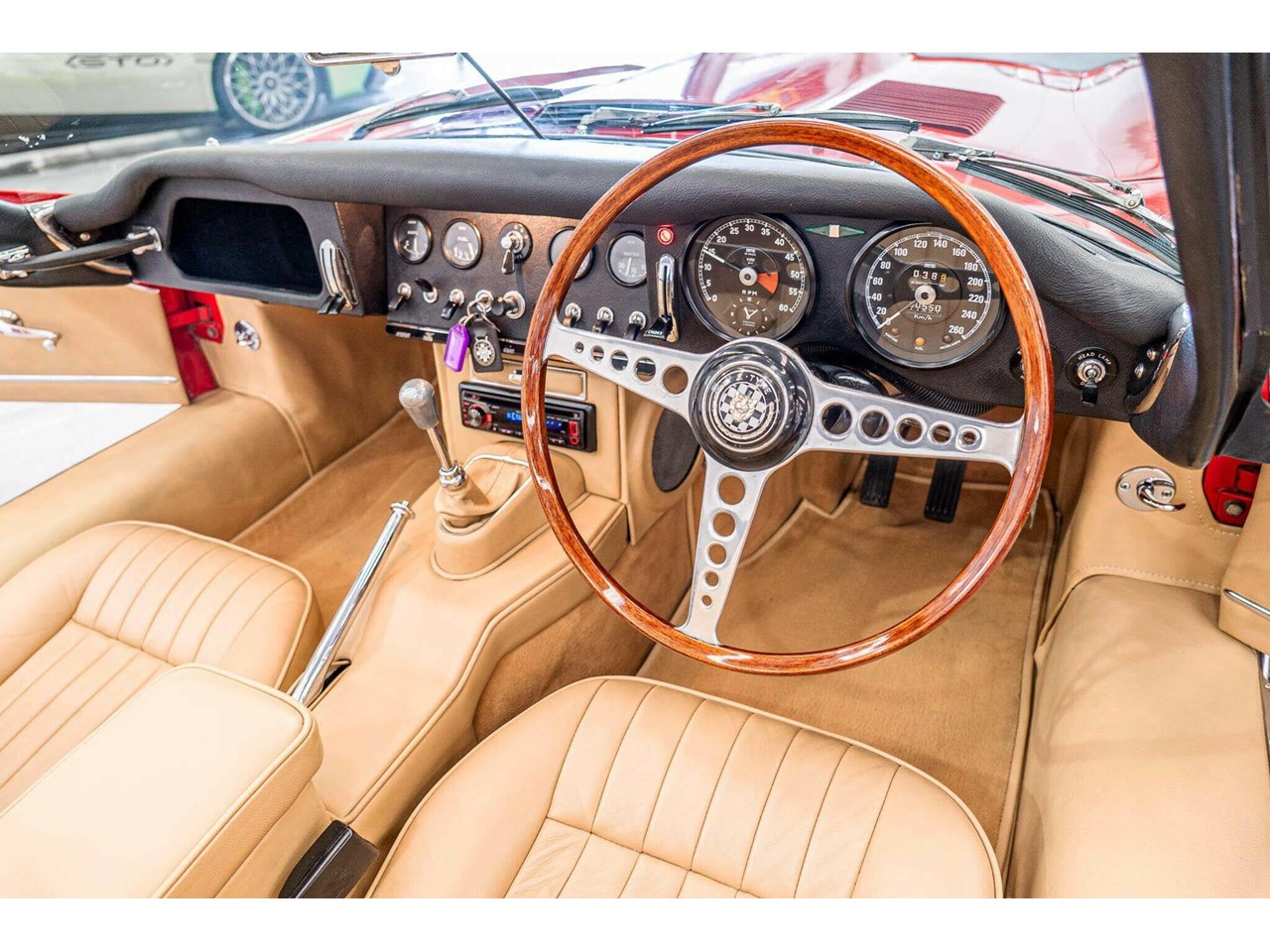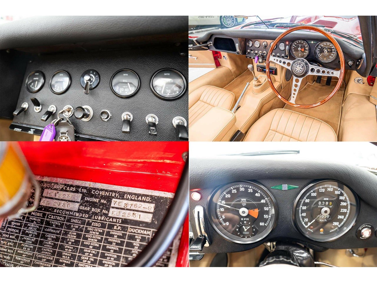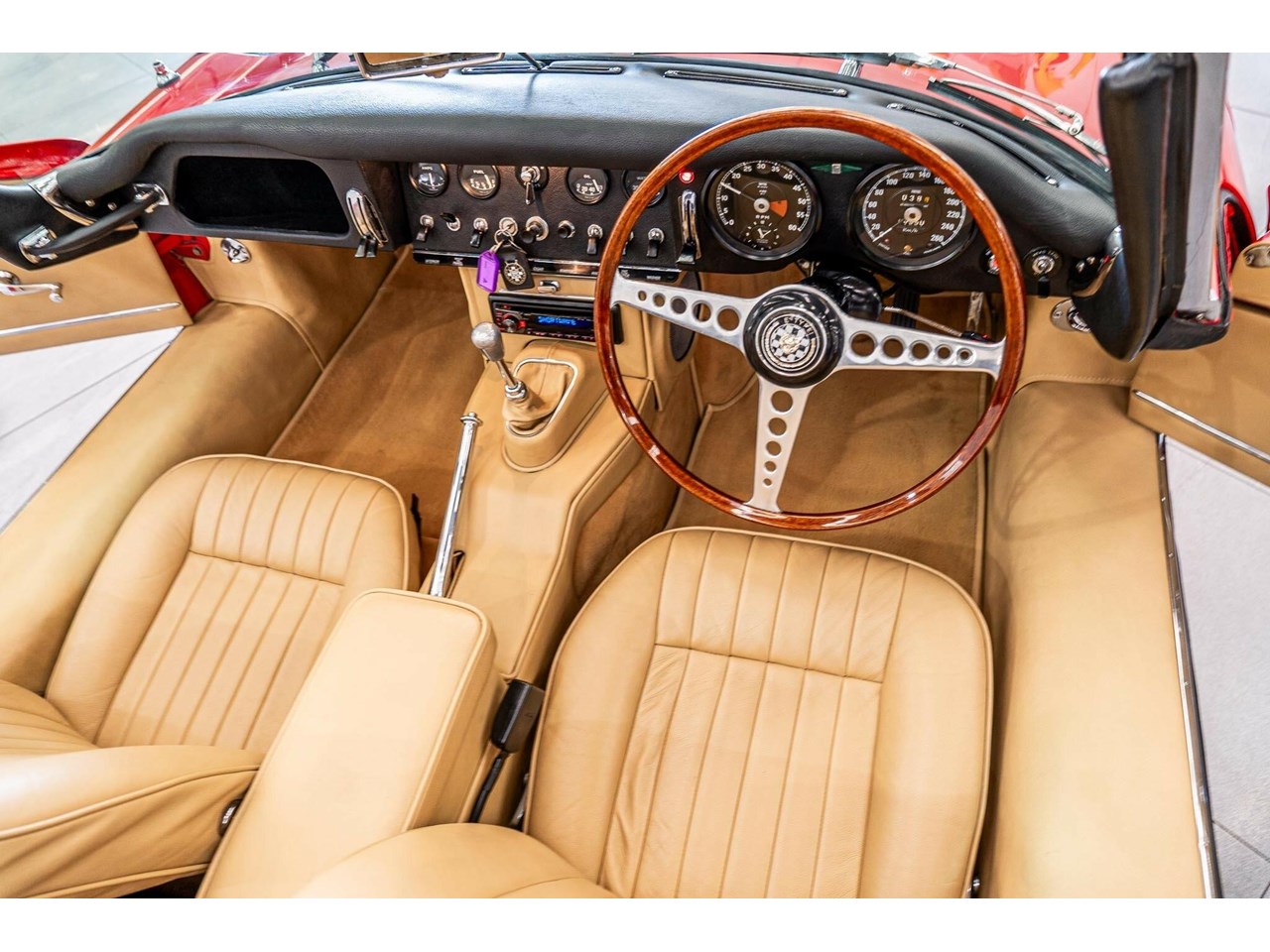 Beneath its signature long, sculpted bonnet lies Jaguars iconic 4.2-litre straight-six engine. Every mechanical component, down to the smallest bolt, has been either expertly restored or meticulously maintained to factory standards. The interior is equally impressive, featuring period-correct leather seats and the classic wood-rimmed three-spoke steering wheel, a timeless tribute to the design and craftsmanship that made the early E-Types true automotive icons.