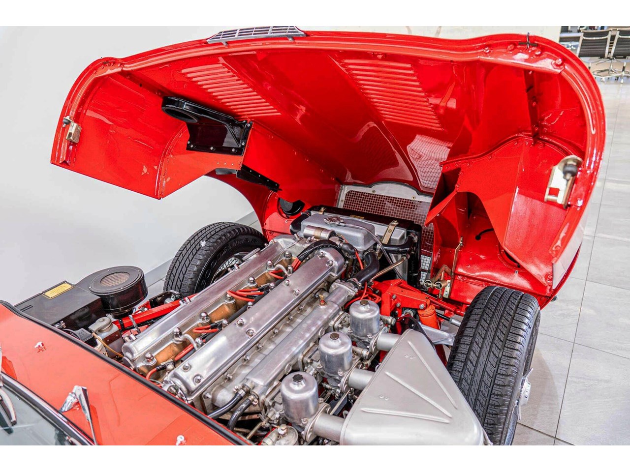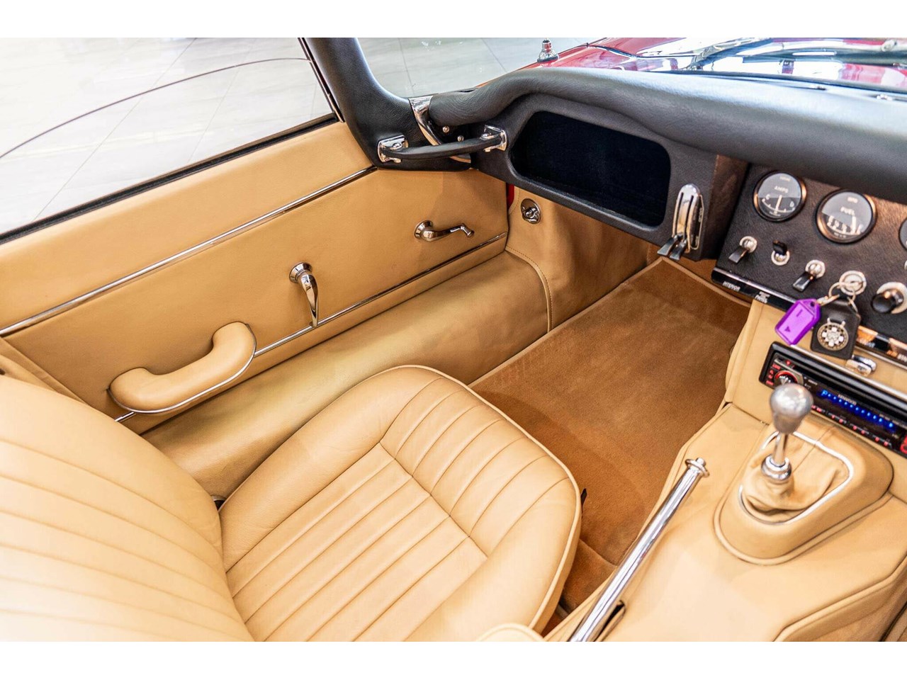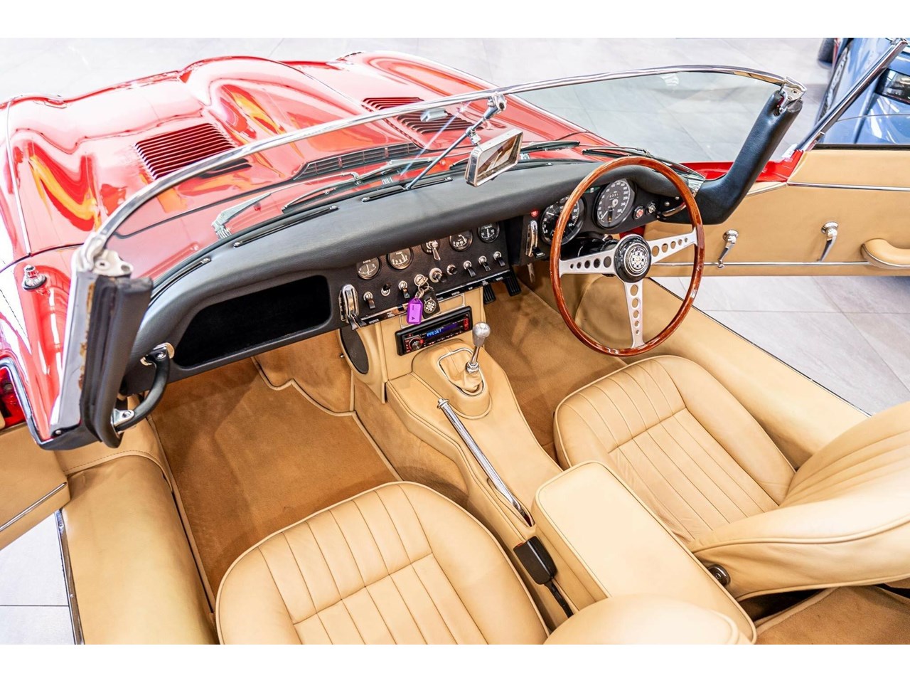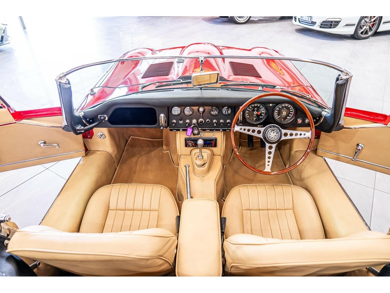 Beneath its signature long, sculpted bonnet lies Jaguars iconic 4.2-litre straight-six engine. Every mechanical component, down to the smallest bolt, has been either expertly restored or meticulously maintained to factory standards. The interior is equally impressive, featuring period-correct leather seats and the classic wood-rimmed three-spoke steering wheel, a timeless tribute to the design and craftsmanship that made the early E-Types true automotive icons.