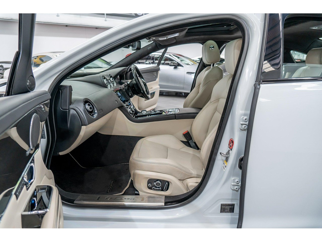 2016 Jaguar XJ MY16 3.0 V6 SC R-Sport MY16 Glacier White 8 Speed Automatic Sedan. Jaguar XJ R-Sport 2017 MY16 ( 3.0L V6 Supercharged ). This is a very rare Jaguar as very few XJ R-Sport was sold in Australia making this a very special unique purchase. Highly optioned with the most sought-after specific R-Sport options, double glass sunroof and carbon Fibre interior package and Black Package. This is the much more powerful ( 250kw ) with refined tunning and R-sport suspension 4-door luxurious Jaguar. Finished in stunning Glacier white with soft touch Ivory leather interior and extended leather package, double stitching throughout, R-Sport branding package, Carbon Fibre interior package, 20inch R-Sport VENOM wheel package and much more.