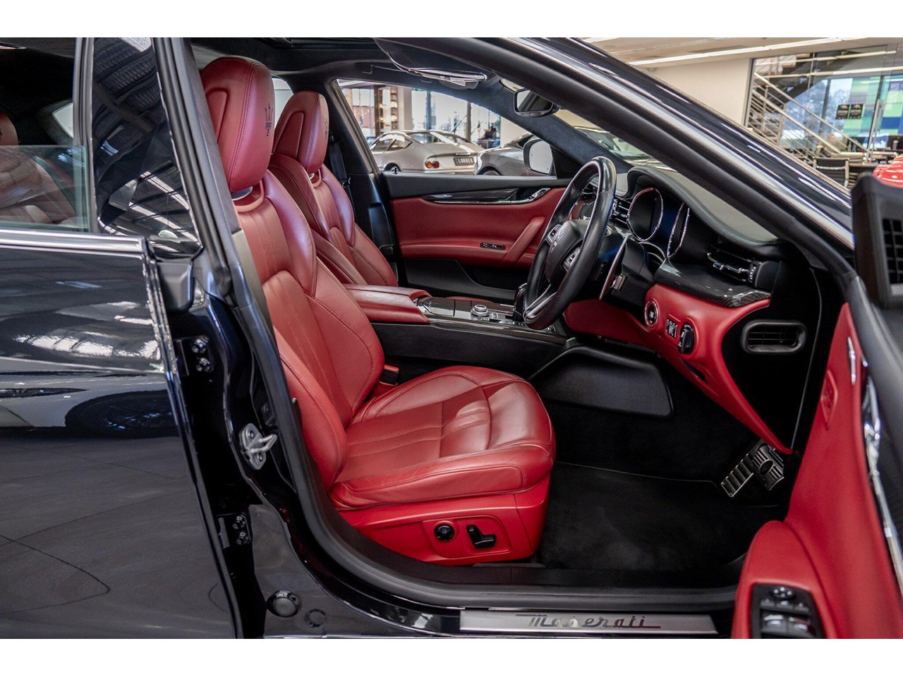 2017 Maserati Quattroporte M156 MY18 GranSport Black 8 Speed Automatic Sedan. MASERATI QUATTROPORTE GRANSPORT 2018 UPDATE ( Current shape facelift model ). Garaged, stored under cover from new and sparingly driven, beautifully presented. Finished in stunning Nero Assoluto black with chrome exterior highlights, full soft touch Bordeaux leather interior with double stitching throughout, emboss trident on headrest, carbon fibre interior trims with brushed aluminium trim accessories.