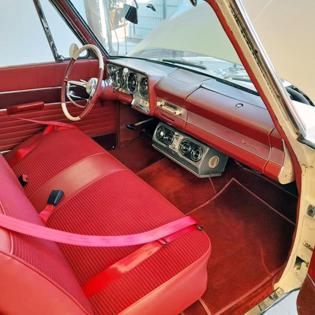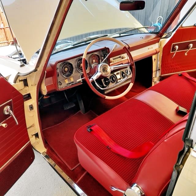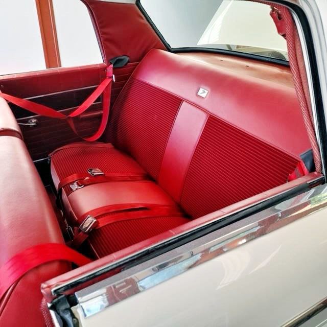 Brake upgrade to PAS Front Discs. Crane electronic ignition with Ice race coil. Factory suspension kit to Super Lark spec. Cylinder heads rebuilt to R3 spec - polished/ported with bigger valves. Factory R3 cast iron exhaust headers. Aluminium intake manifold. Edelbrock 4bbl carburettor. Auto transmission rebuilt. Seats reupholstered in matching red cloth/vinyl. Floor carpets/mats in matching red tone. Original factory tachometer - converted to electronic.