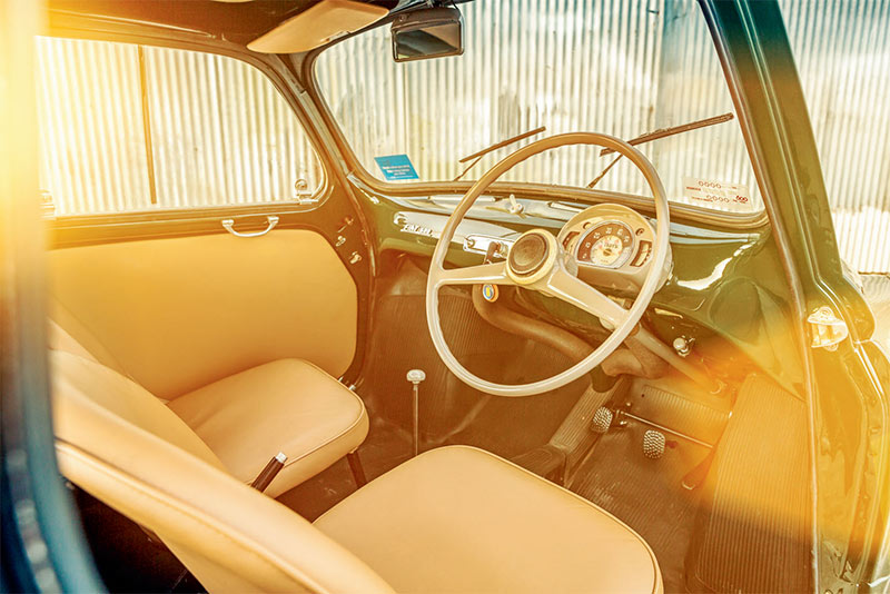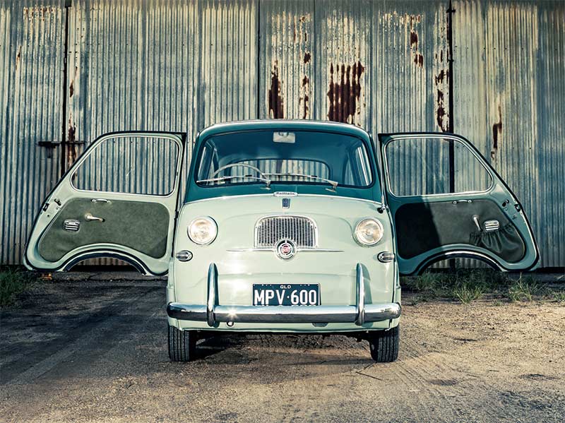 Gary Caller bought his 1955 Fiat 600 about six years ago. Of the 100-plus cars he’s owned, the majority – 60 or 70 he reckons – have been Fiats.