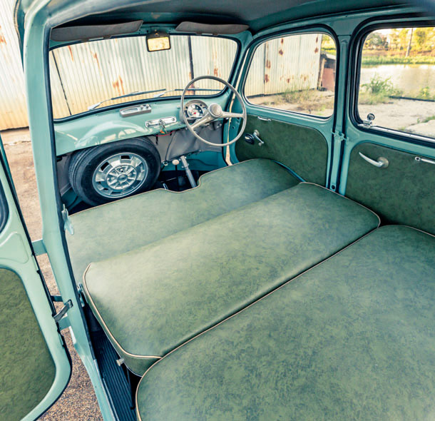 Gary says that many owners claim their cars are ’55 models but that in fact very few came to Australia in that first year. But he has obtained documentary evidence that his was built within the first six weeks of production, which makes it a bit of a rarity. He’s restored it completely and all the panels are original and it’s never had a serious prang. He especially likes details like the sliding windows, the indicators in the centre of the dash and “lots of quirky things that make it more appealing.”