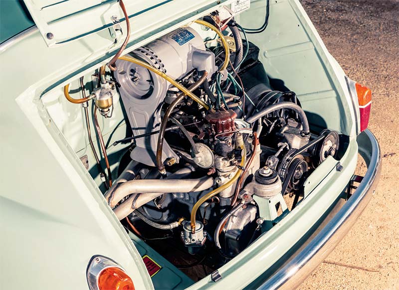 Performance was adequate with 21.5 brake horsepower at a most un-Volkswagenlike 4600 rpm. The top speed was 97 km/h and it could cruise at 80. You couldn’t buy it in red but just dull grey, light or dark blue, or the green of Gary Caller’s 1955 car shown here, so obviously Fiat management weren’t aiming it at an enthusiast market. That would come later, when Carlo Abarth drove it very fast down the garden path.