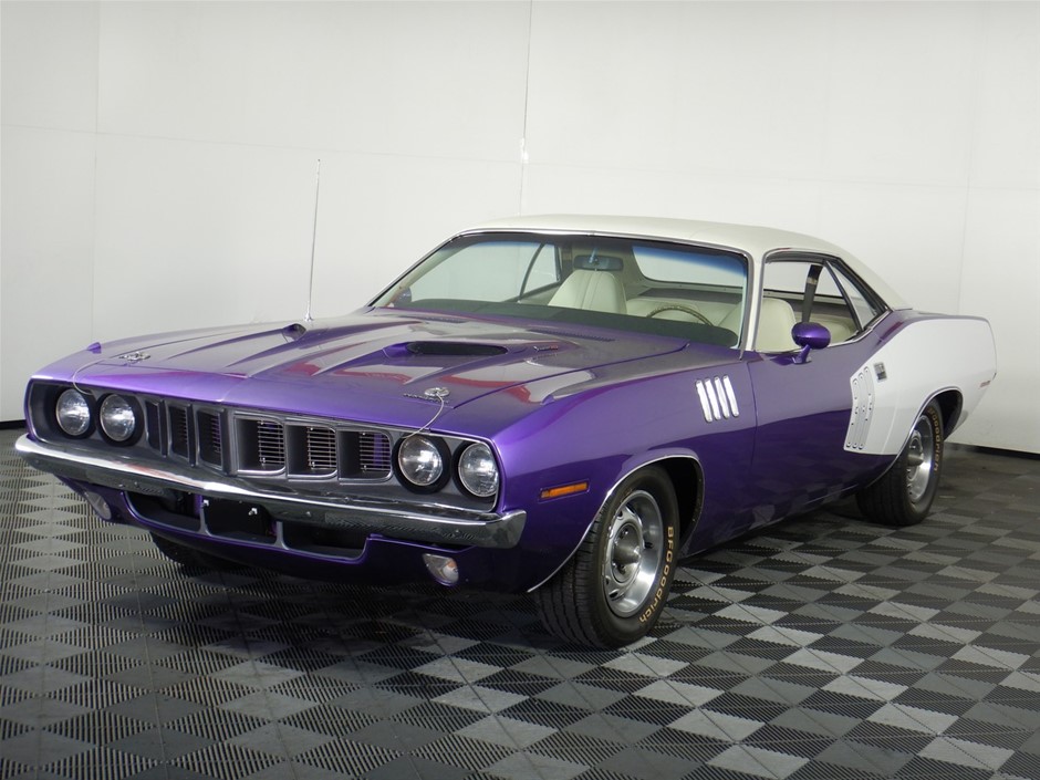 Built by Plymouth to crush all other factory muscle cars, the Hemi ‘Cuda was well specced with bucket seats, woodgrain console, a Rallye instrument cluster and Music Master AM radio. Outside were bonnet pins, drip rail and body sill mouldings, rear deck spoiler and chrome exhaust tips.