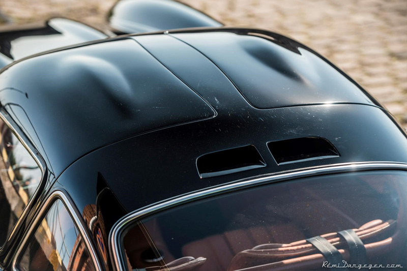 In addition to the unique chopped roof, the car was resprayed black and trimmed with a red ostrich and cognac leather interior, fitted with a pair of Marchal driving lamps up front, and features an assymetrical driver’s side fender mirror.