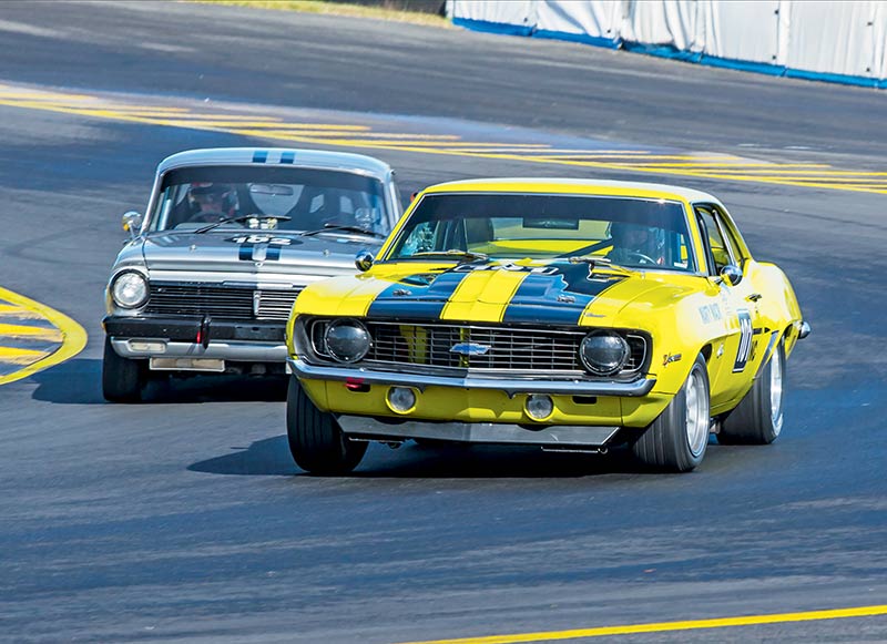 Vince usually races a Torana in the Group N category and agreed the Camaro is a little different to drive, but not a great deal quicker than the little Aussie six- pot.